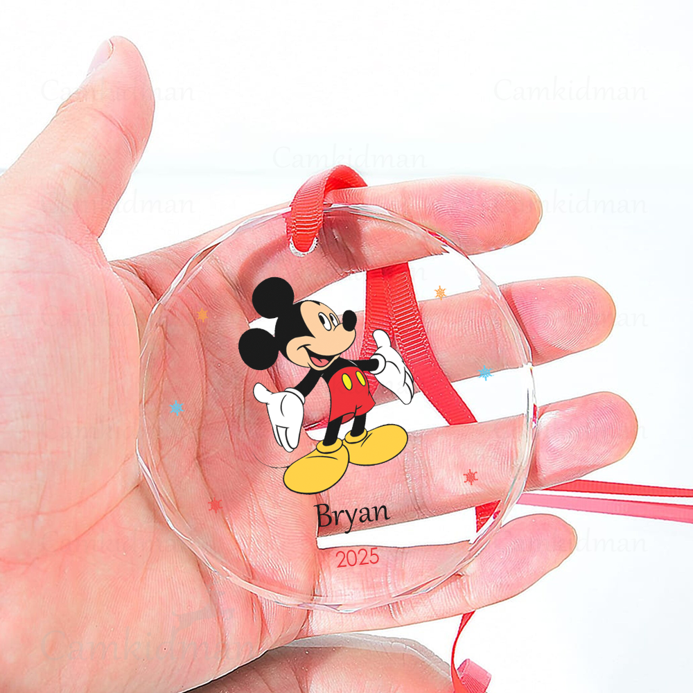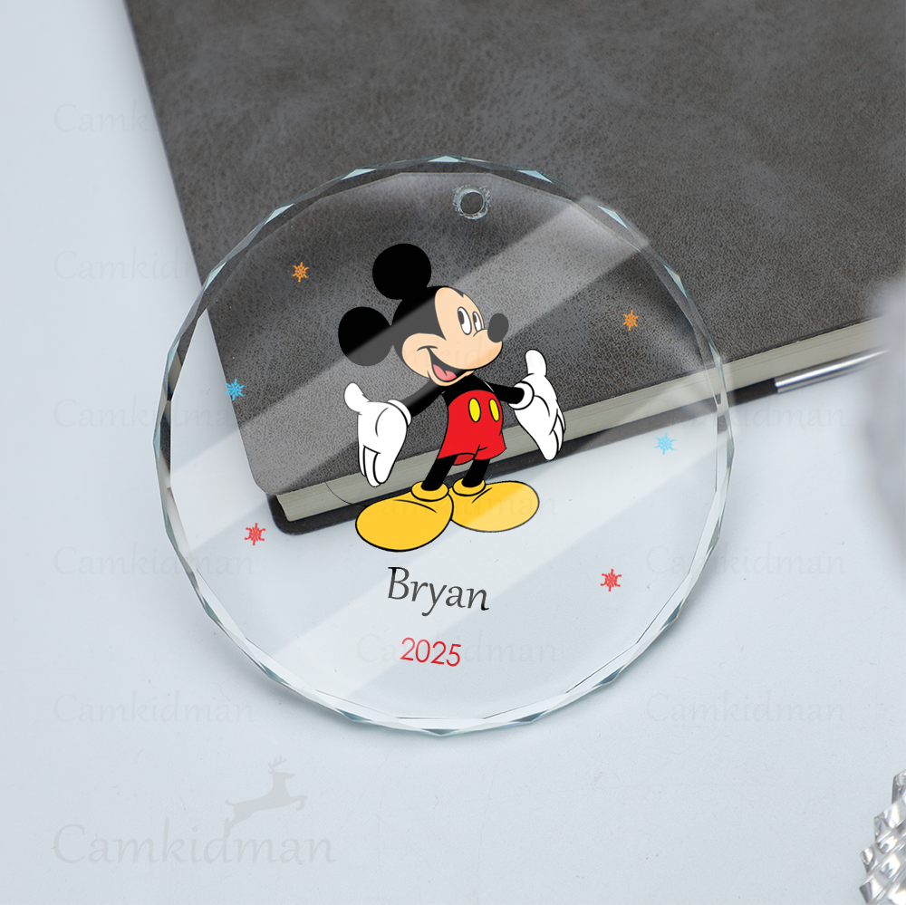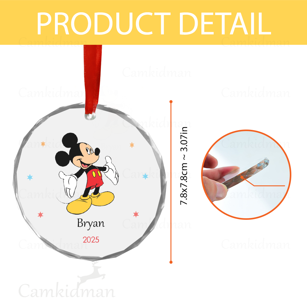 Mickey Walking Pose Personalized Name 2025 Glass Ornament gifts family