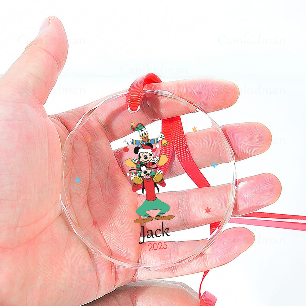 Mickey With Glass Christmas Ornament 2025 Personalized Name Lights tree