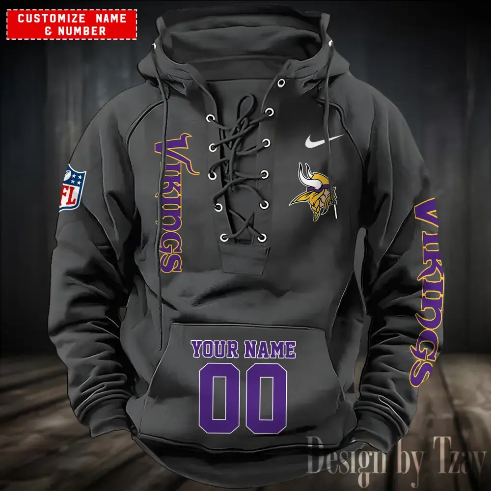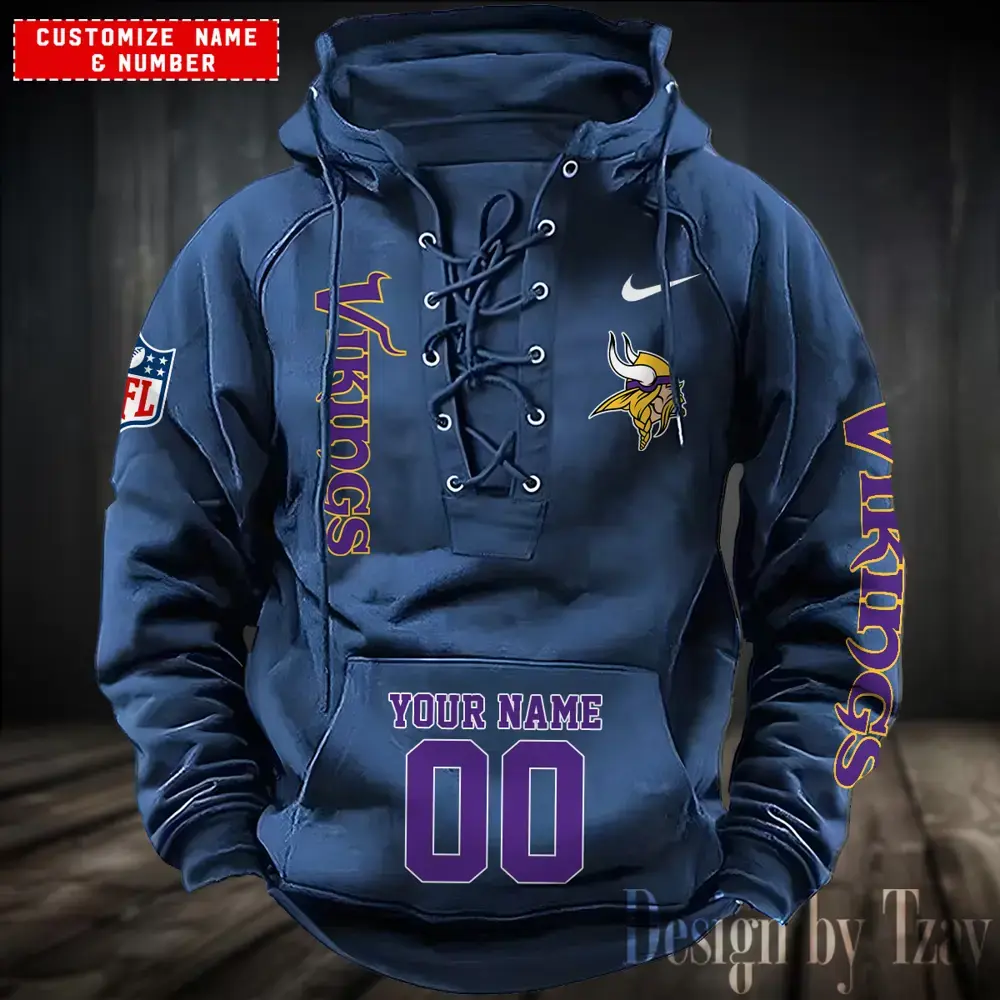 Minnesota Vikings Men Hooded Lace up Hoodie