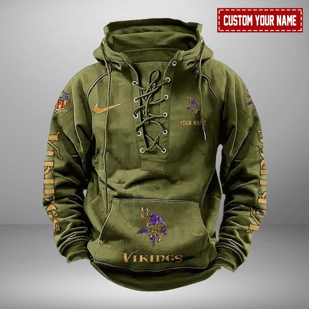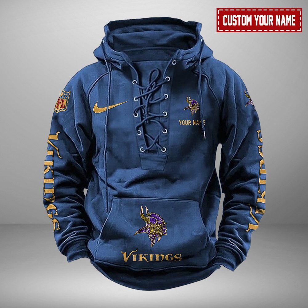Minnesota Vikings NFL Retro Lace Up Hoodie Personalized Mens Throwback