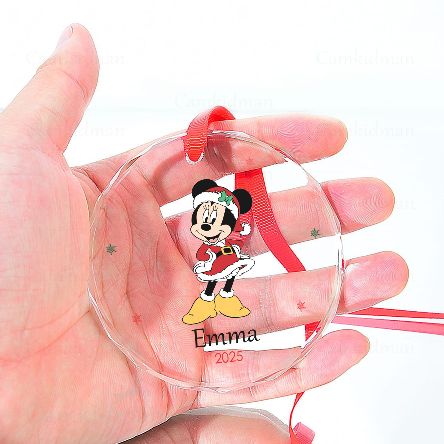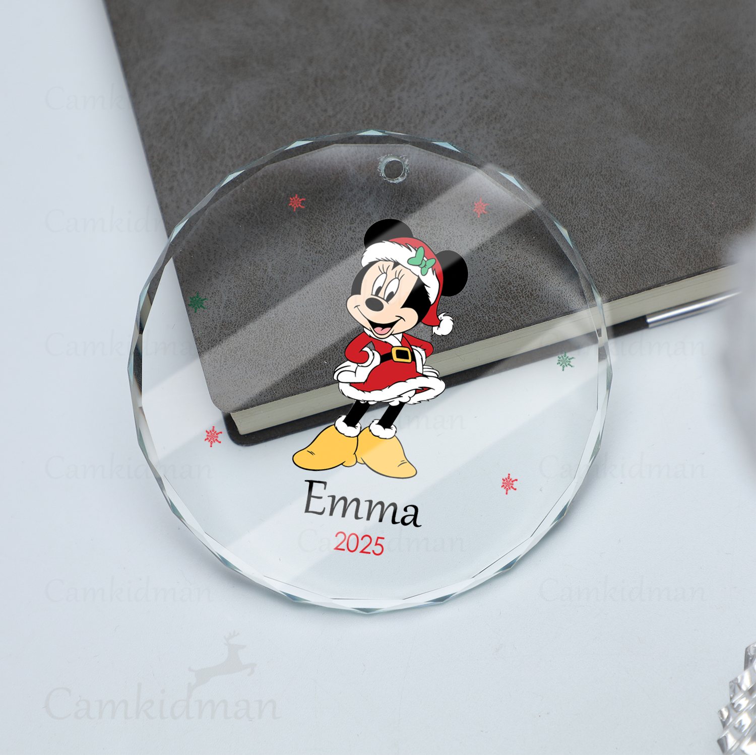 Minnie Glass Christmas Ornament 2025 Personalized Name Outfit gifts family