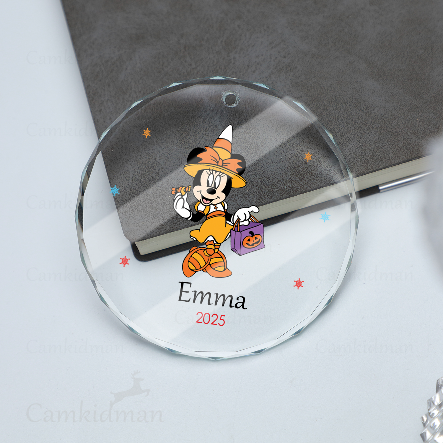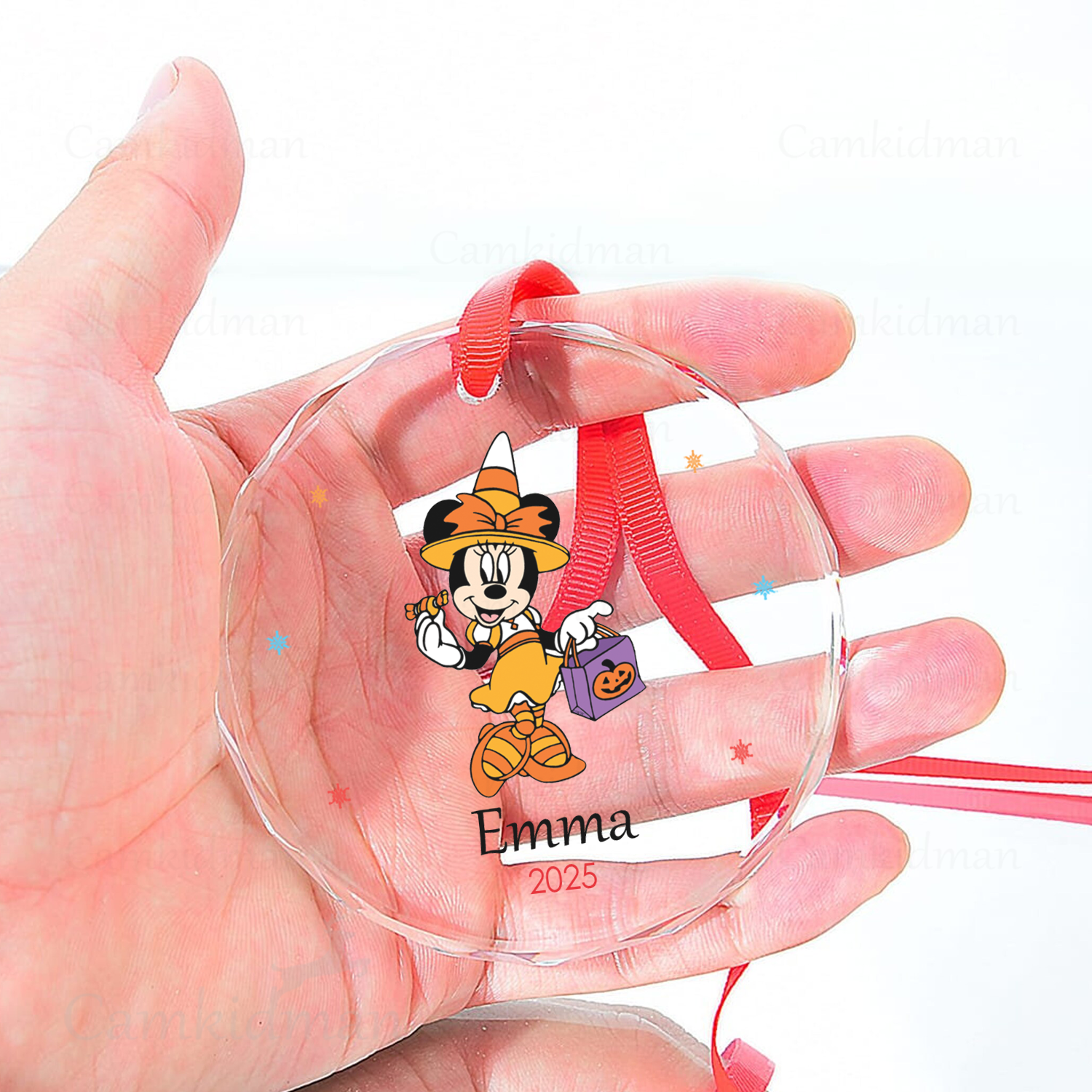 Be the first to review “Minnie Purple Orange Outfit Personalized Name 2025 Glass Ornament tree”