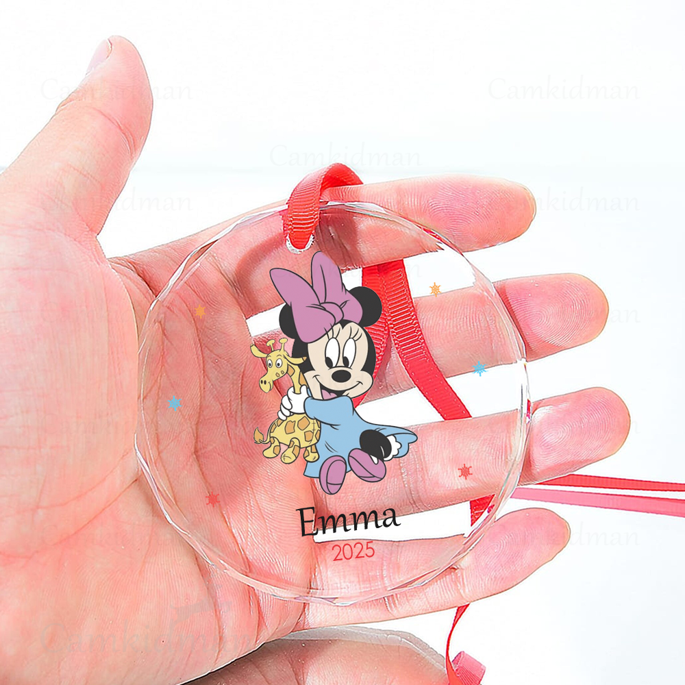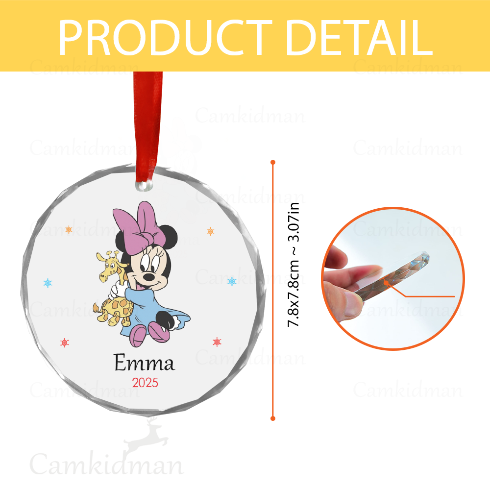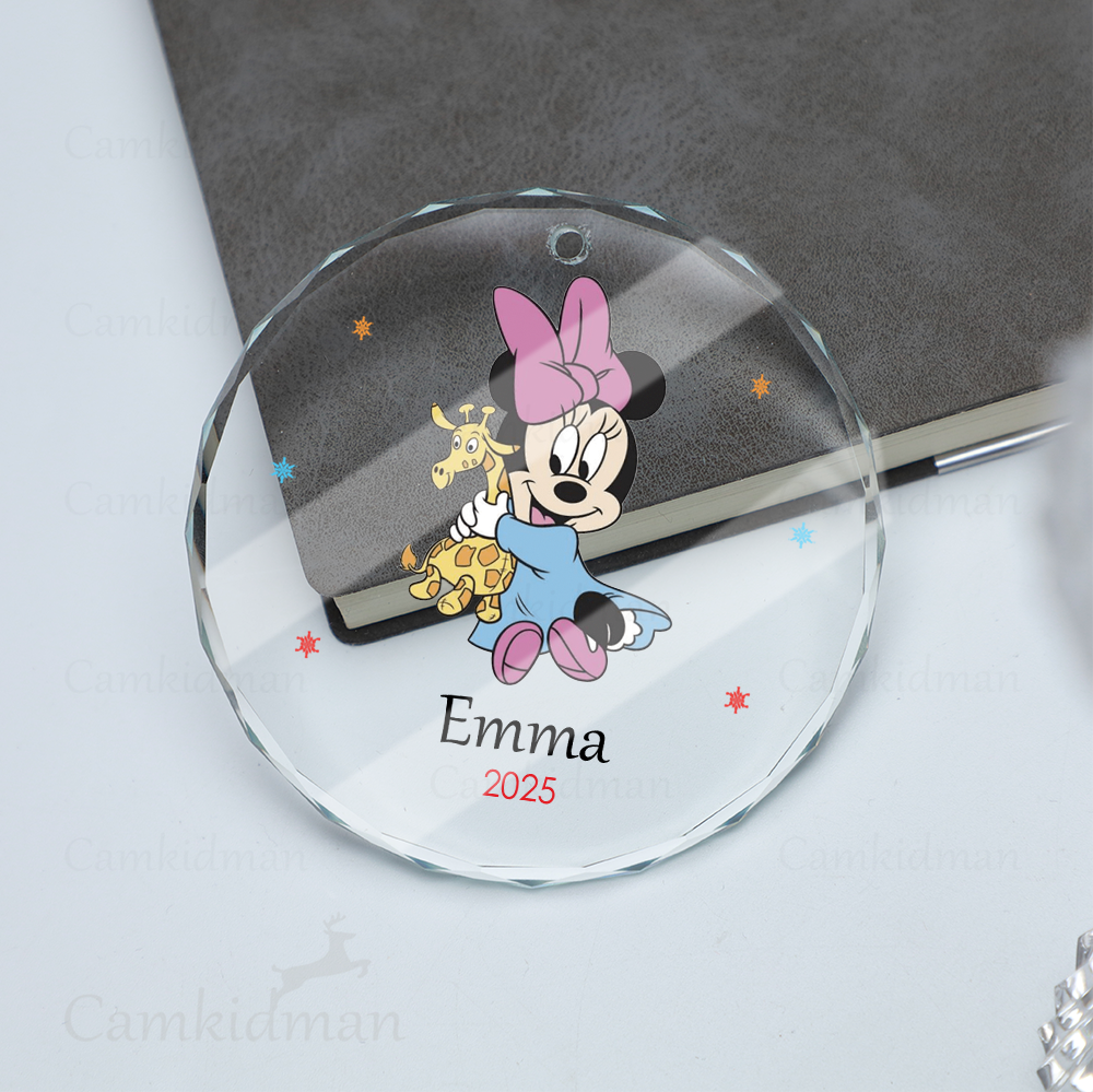 Minnie With Teddy Bear Personalized Name 2025 Glass Ornament gifts kids