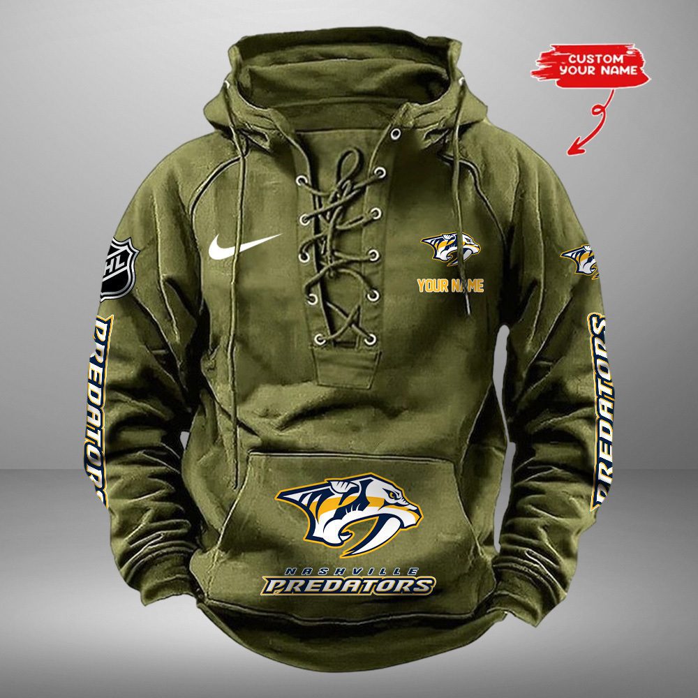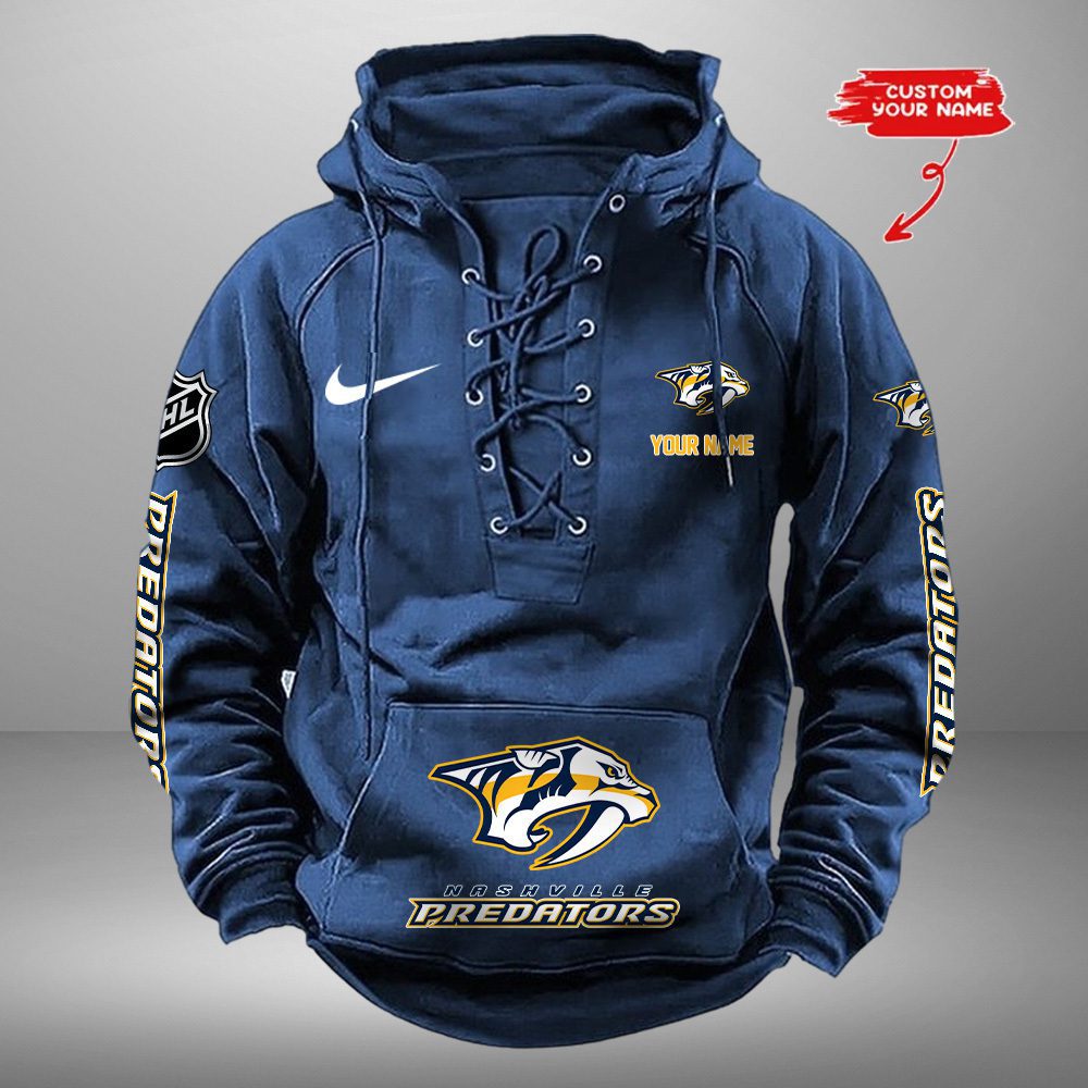 Nashville Predators NHL Retro Lace Up Hoodie Custom Name Mens Vintage