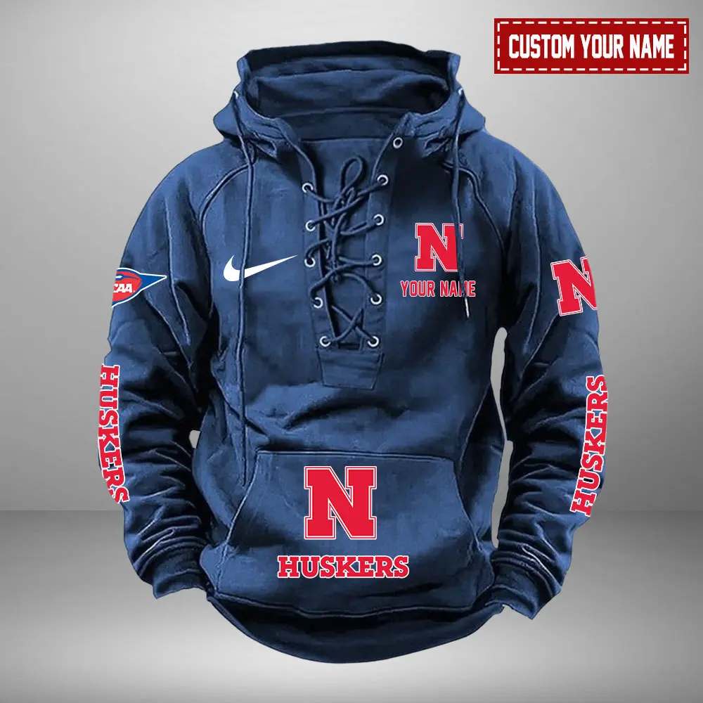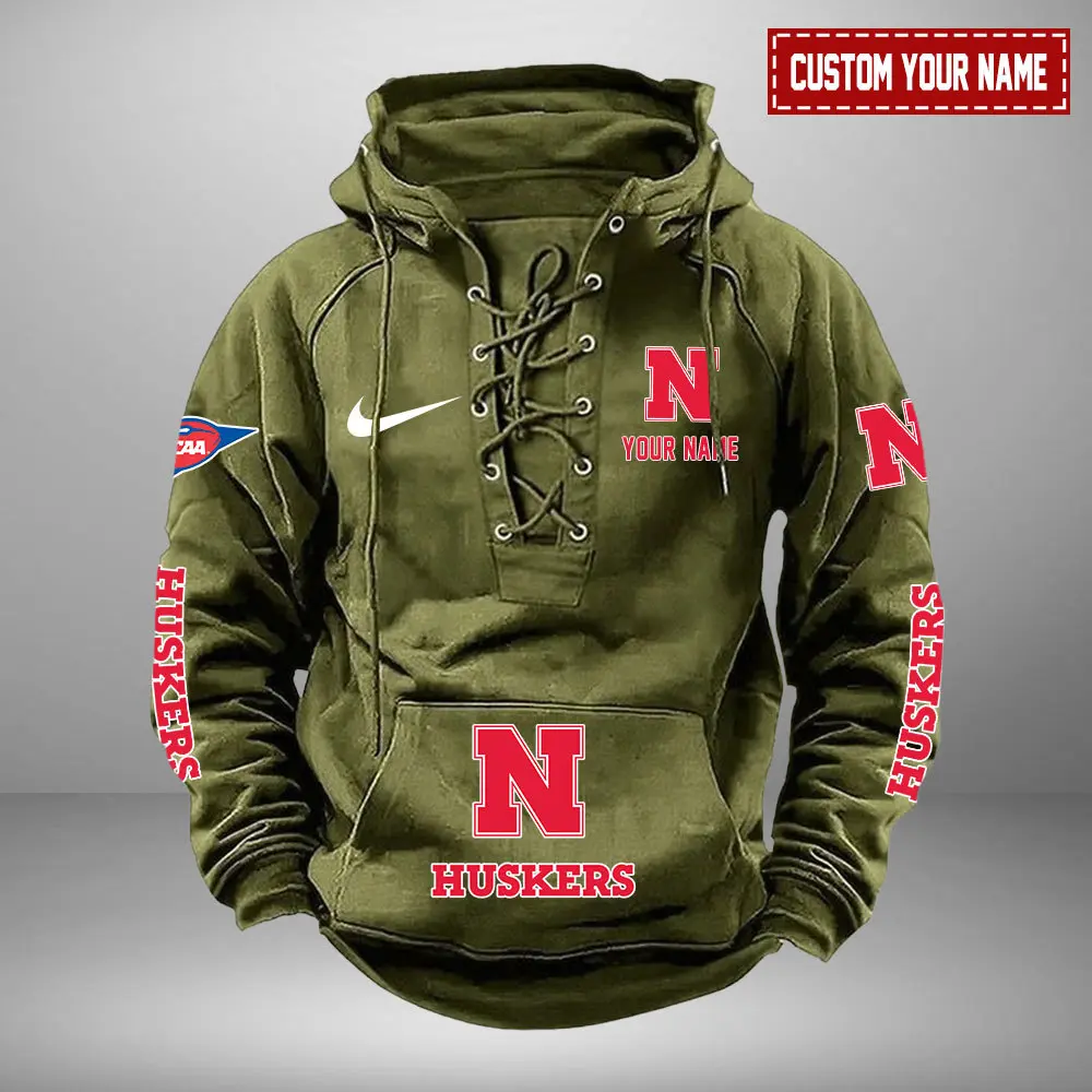 Nebraska Cornhuskers NCAA Retro Lace Up Hoodie Custom Name Mens Vintage