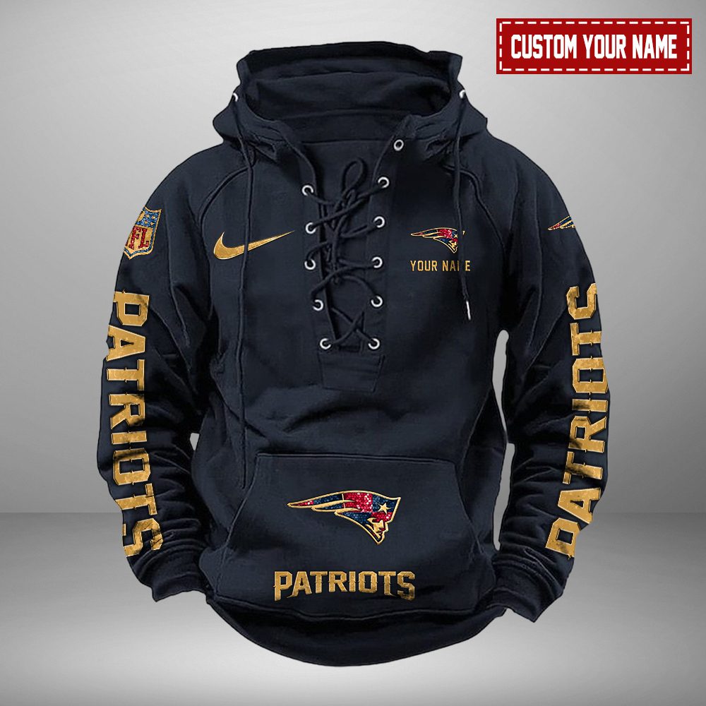 New England Patriots NFL Retro Lace Up Hoodie Personalized Mens Vintage