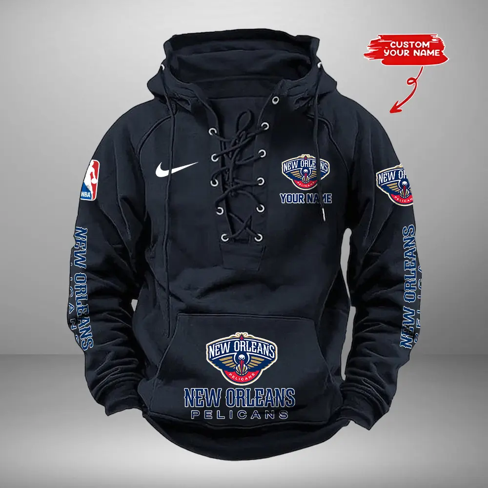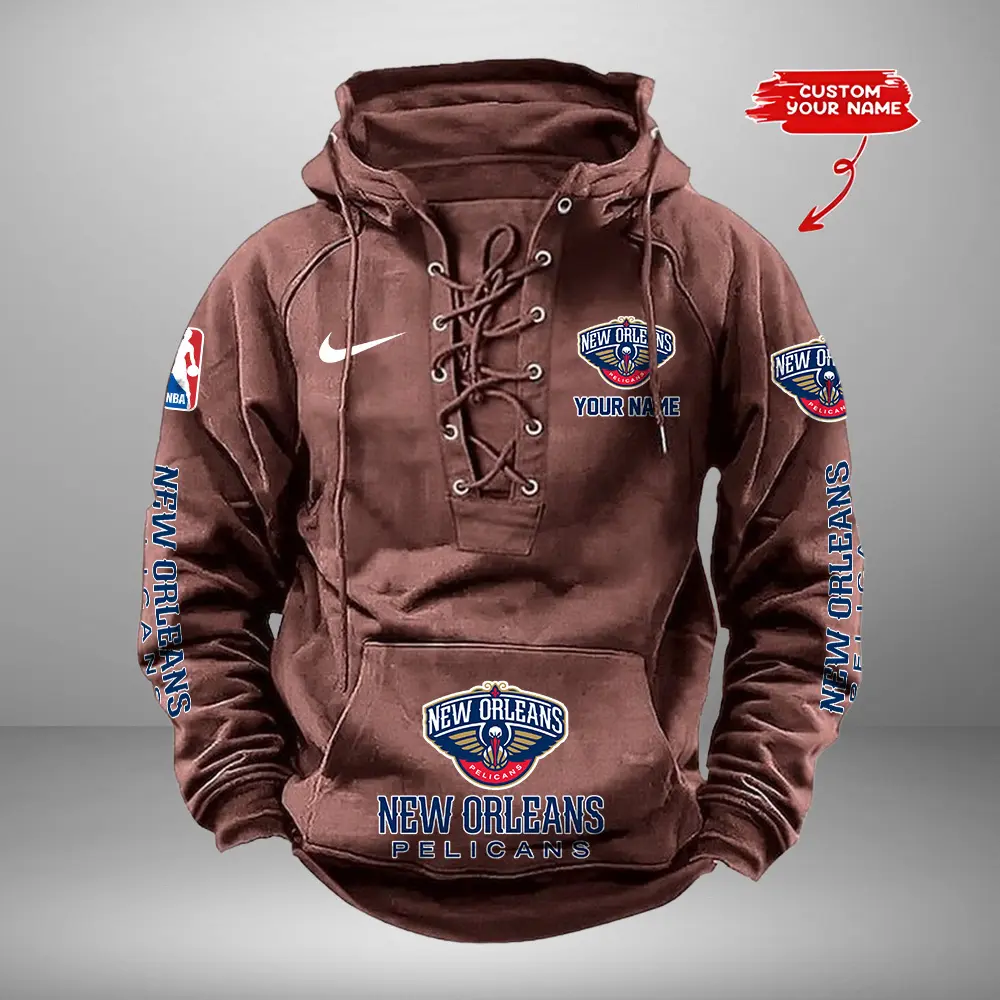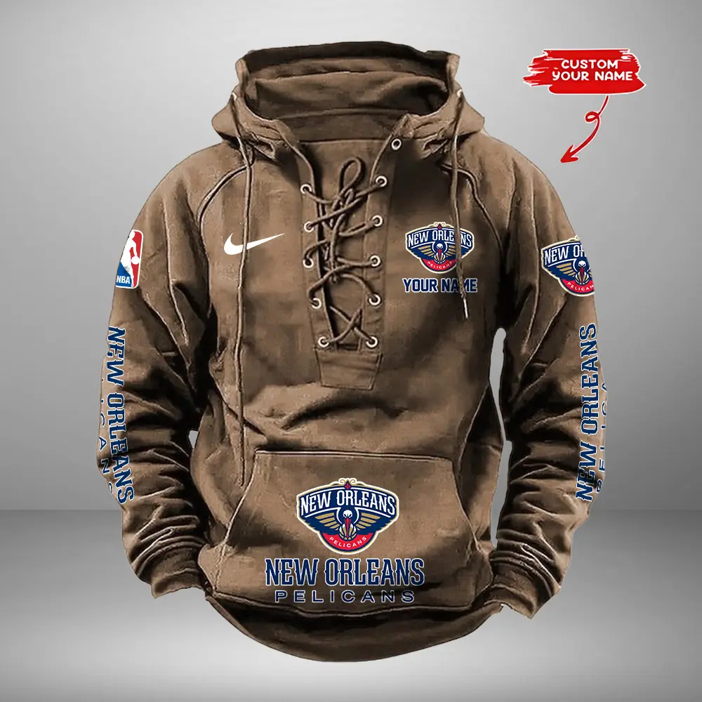 New Orleans Pelicans NBA Retro Lace Up Hoodie Personalized Mens Pullover