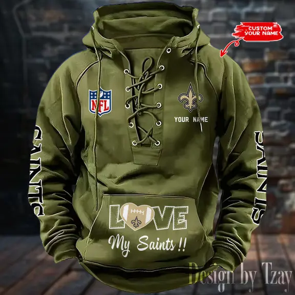 New Orleans Saints NFL Hooded Lace Up Hoodie Mens Fan Gear