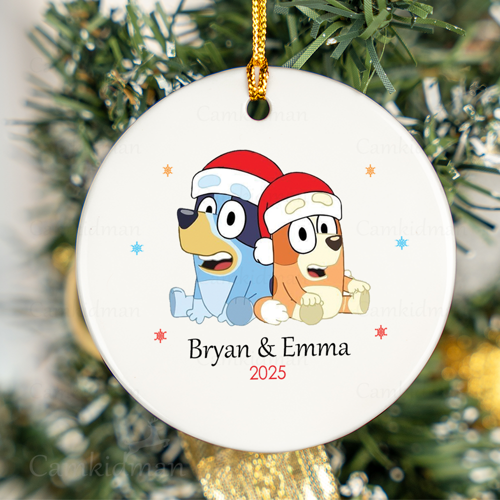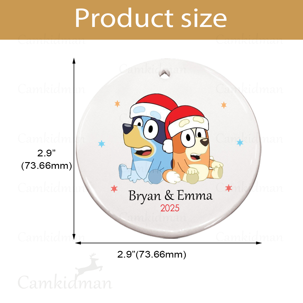 Personalized Name 2025 Bluey and Bingo Glass Christmas Ornament Holiday Decoration