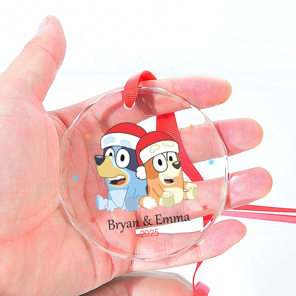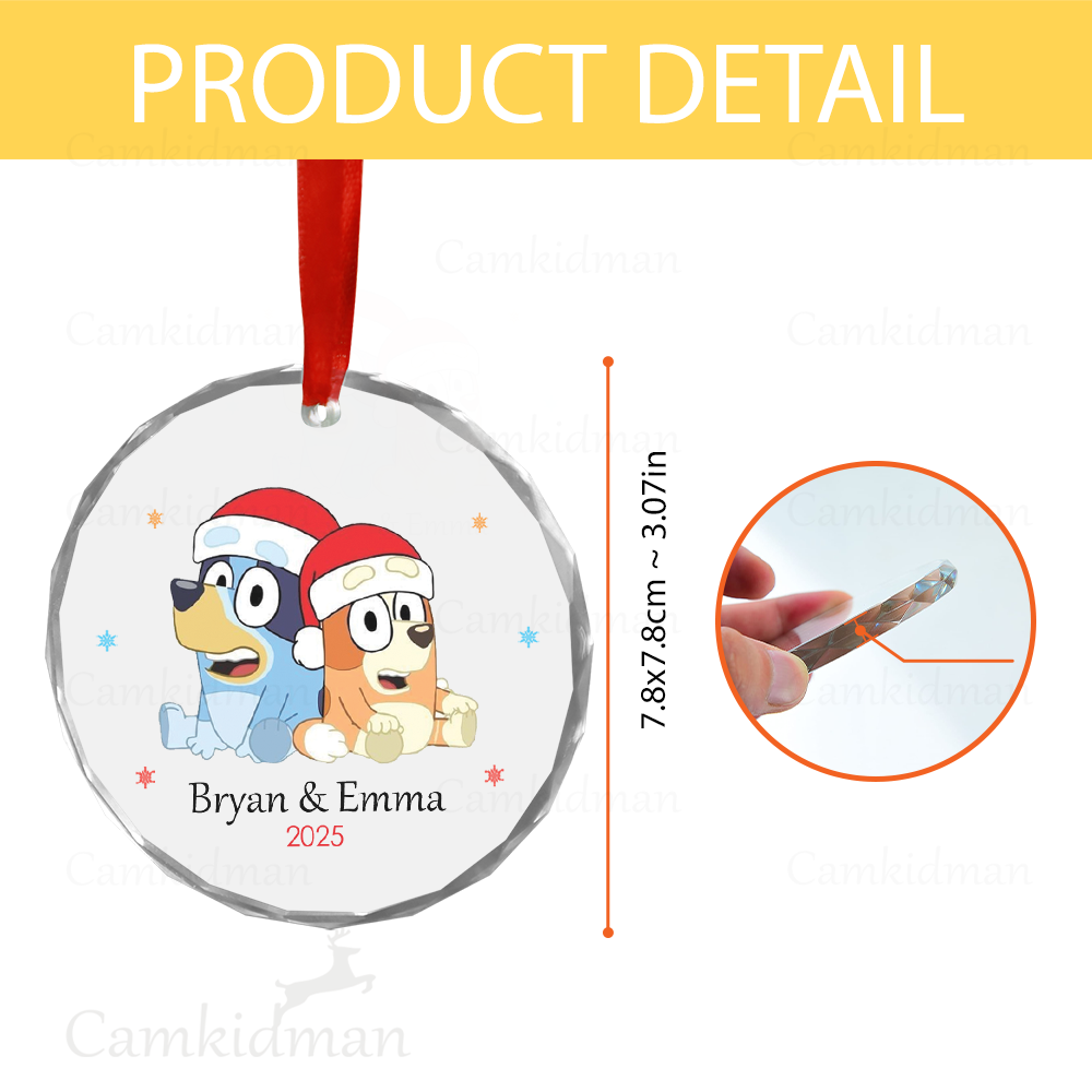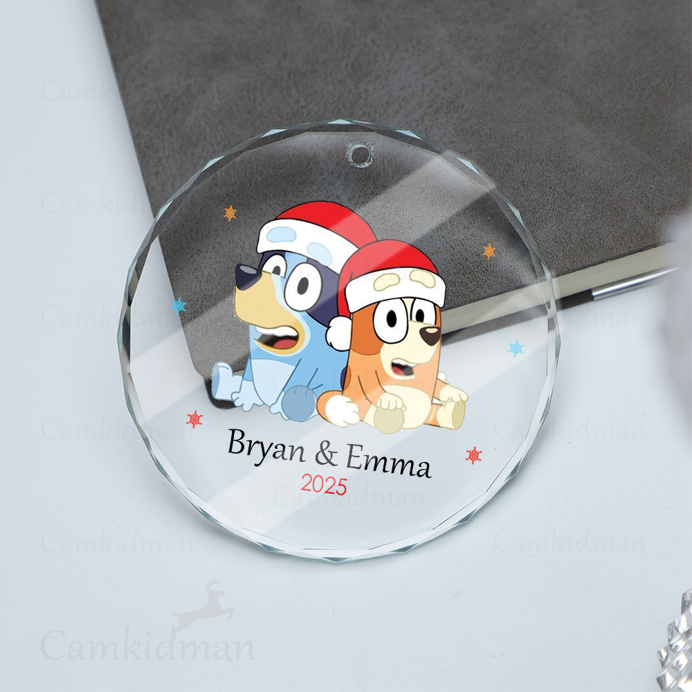 Personalized Name 2025 Bluey and Bingo Glass Christmas Ornament Holiday Decoration