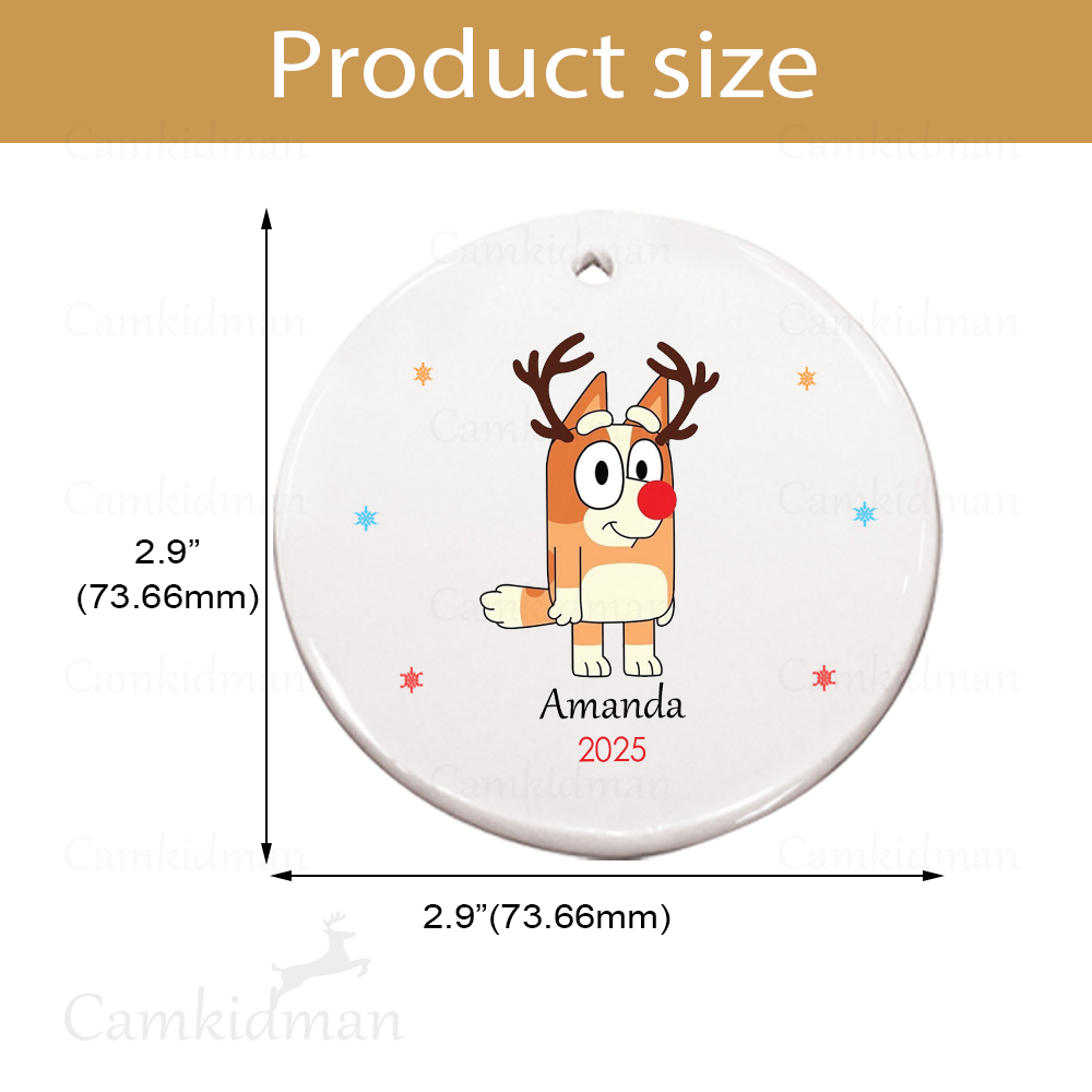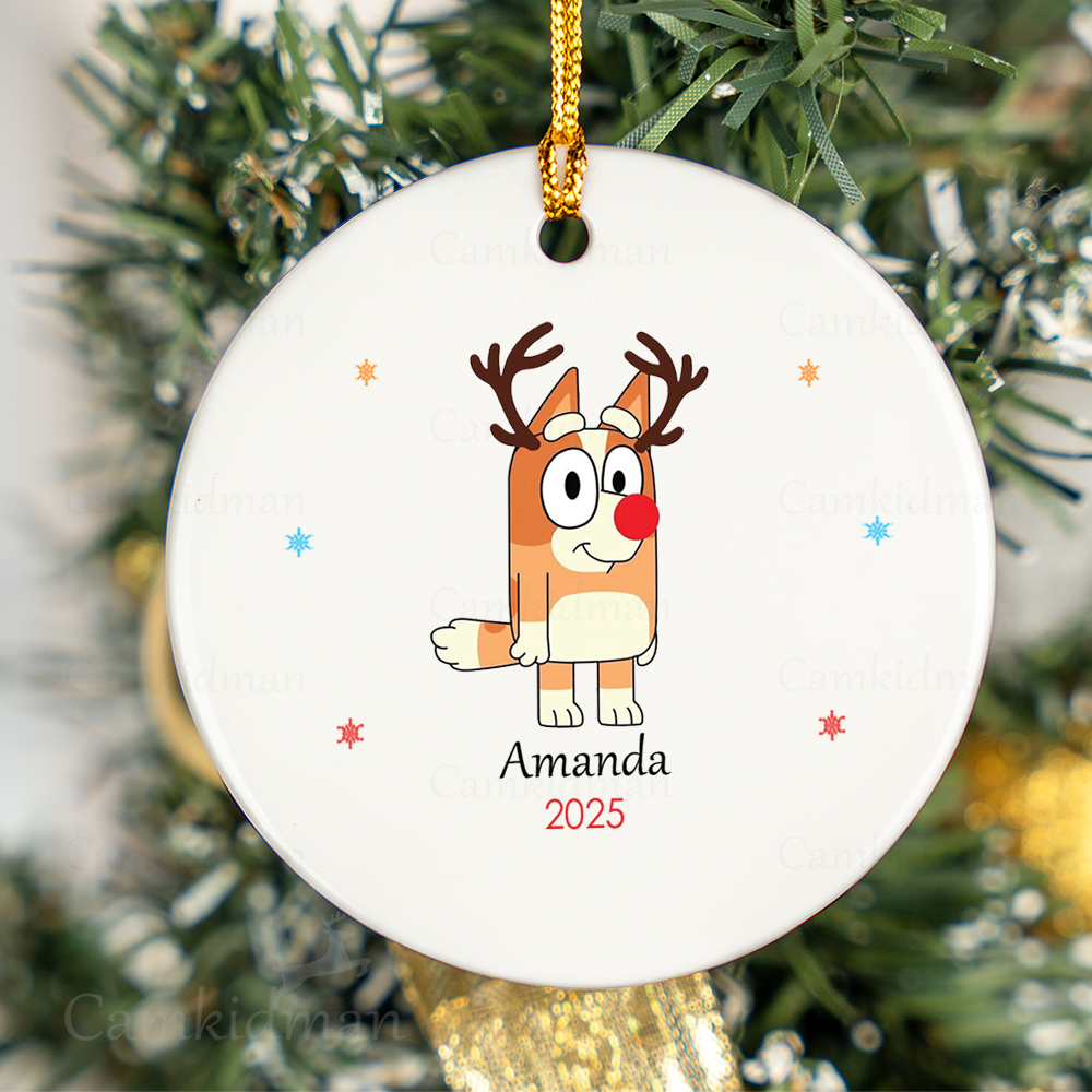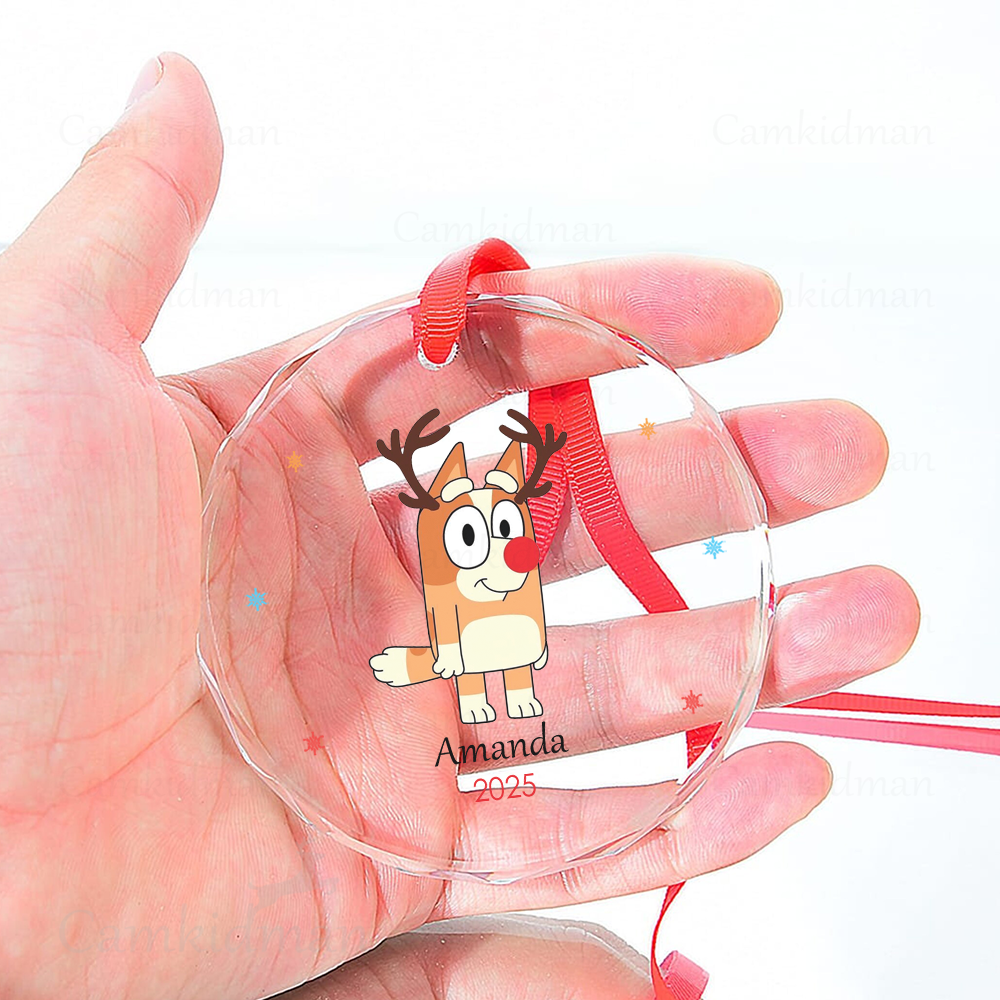 Personalized Name Bingo Bluey Character Reindeer Antlers Glass Christmas Ornament Decoration