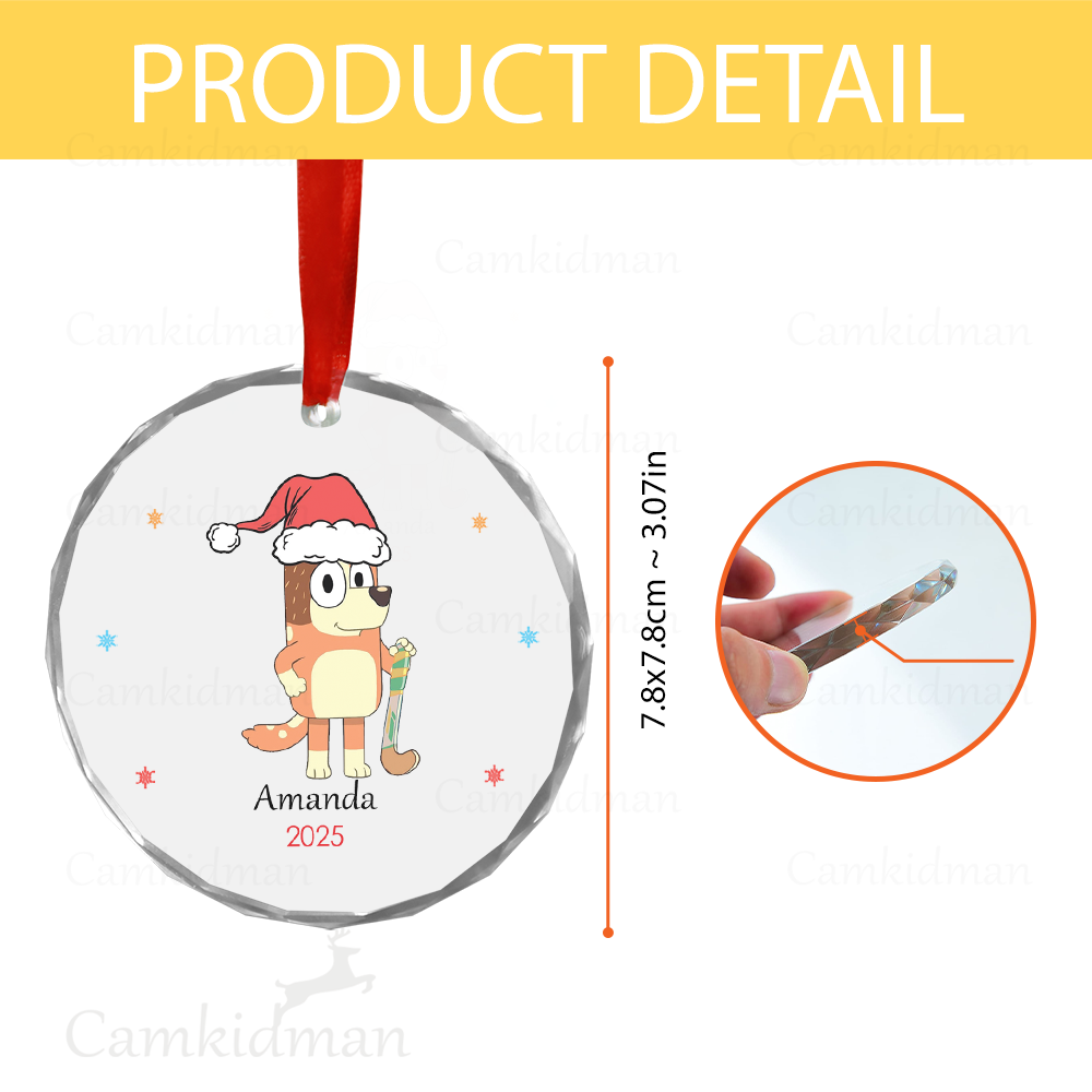Personalized Name Bingo Character with Santa Hat 2025 Glass Christmas Ornament Holiday Decor
