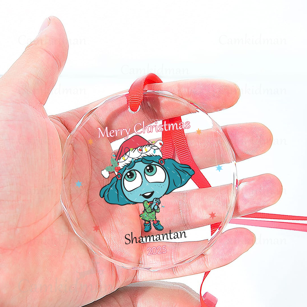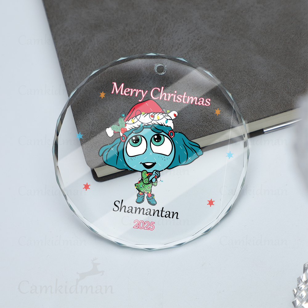 Personalized Name Blue Cartoon Character Glass Ornament 2025 Funny Holiday Glass Decoration