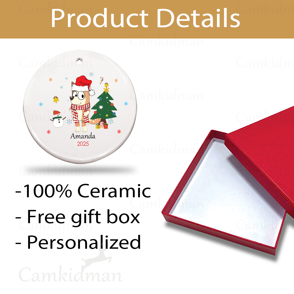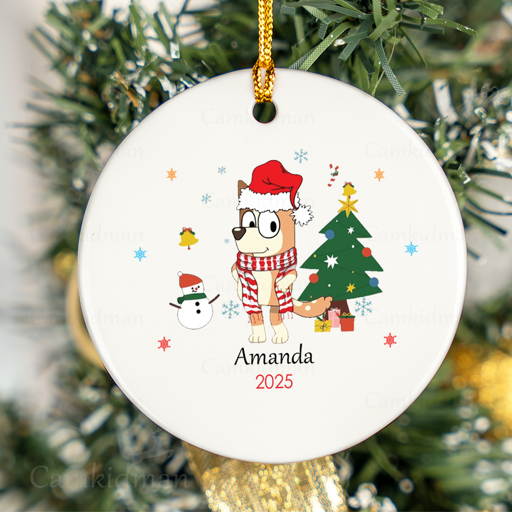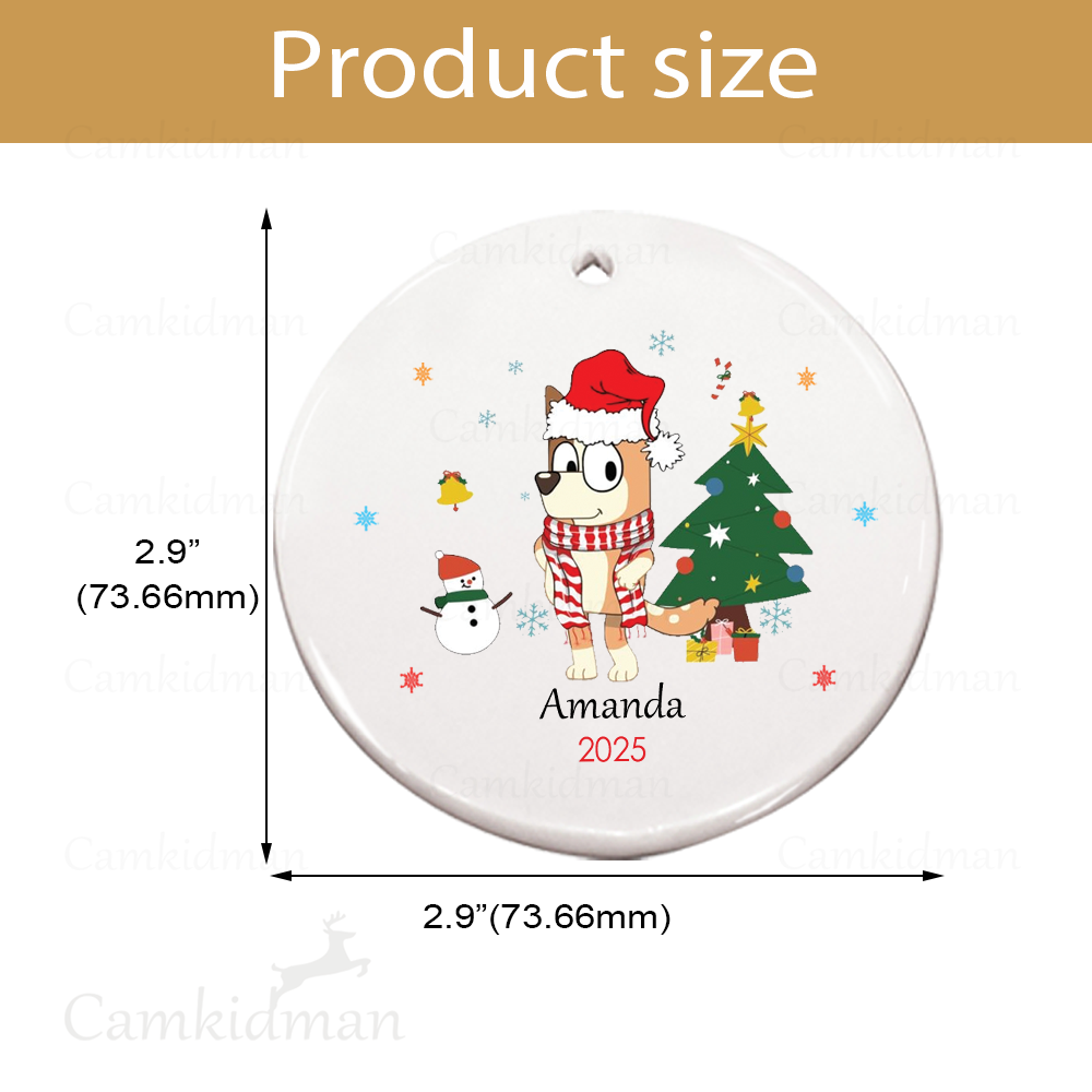 Personalized Name Bluey and Bingo Christmas Couple 2025 Glass Round Ceramic Ornament Glass Ornament Holiday Keepsake
