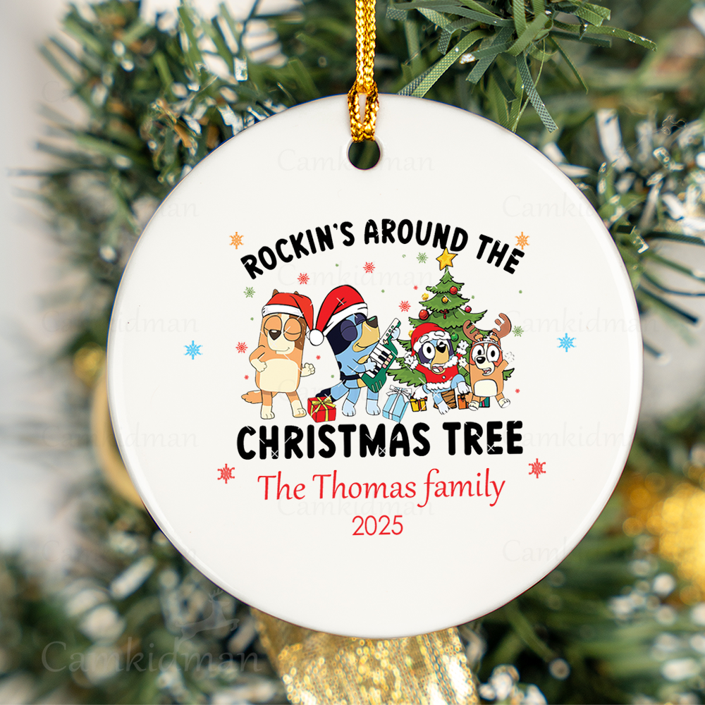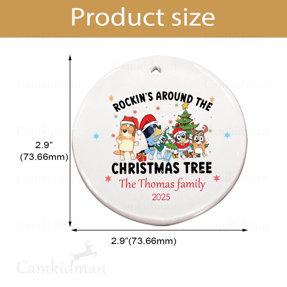 Be the first to review “Personalized Name Bluey and Bingo Christmas Tree Scene 2025 Glass Round Ceramic Ornament Glass Ornament Holiday Decor”