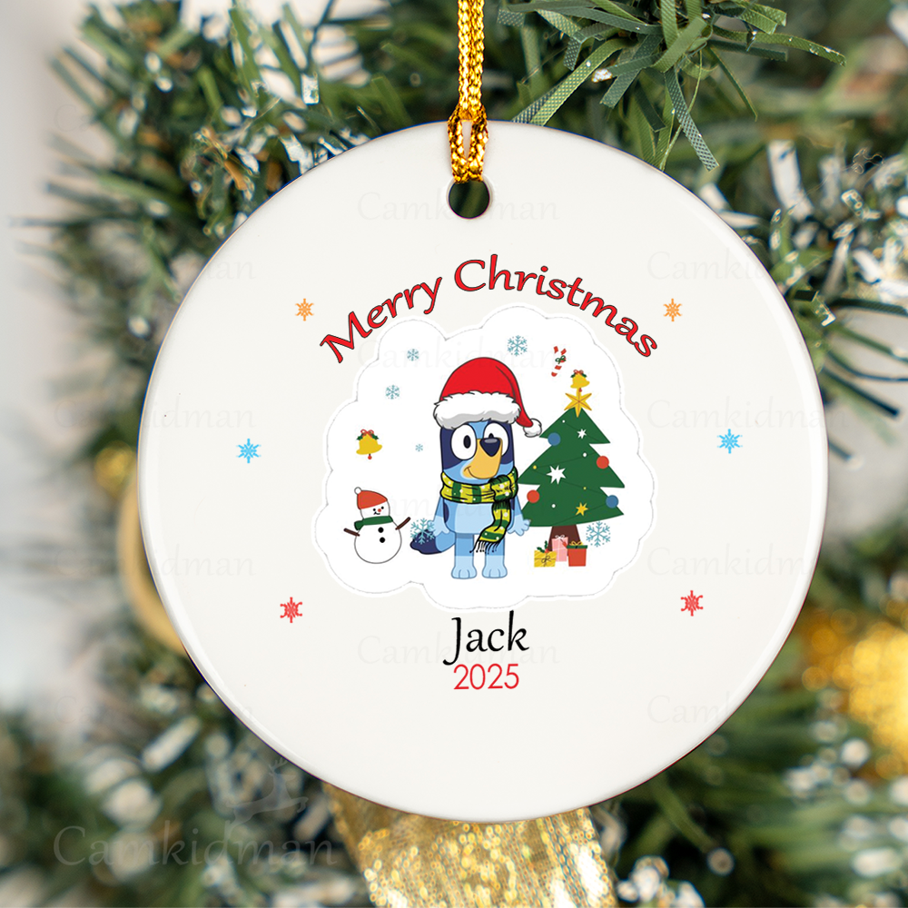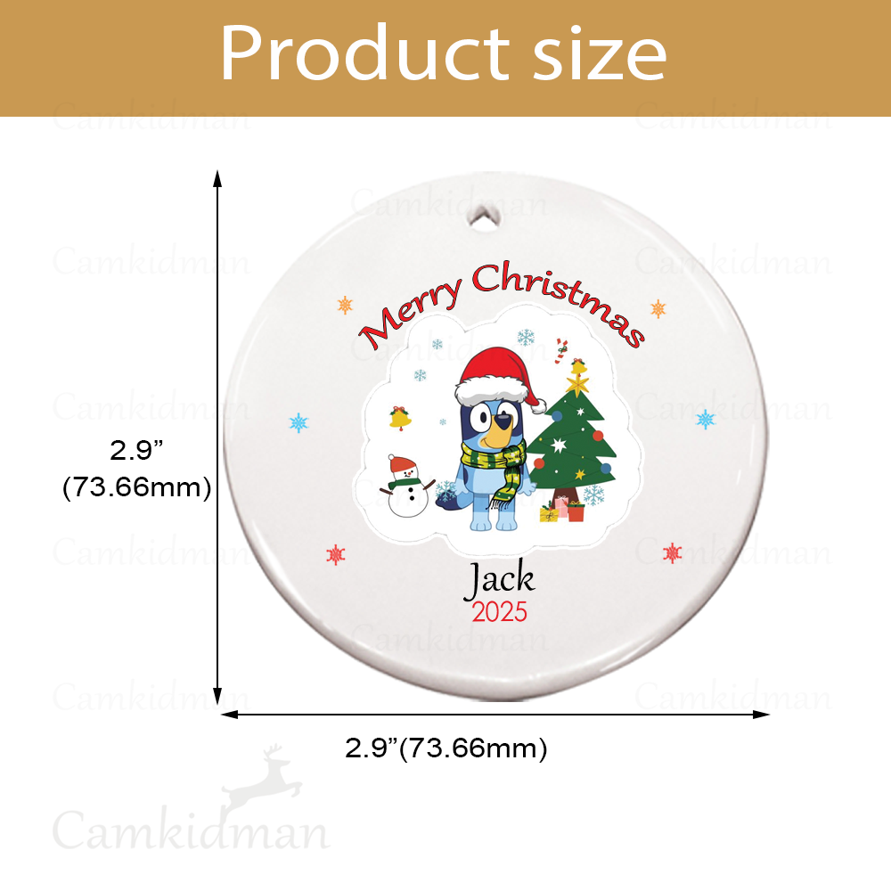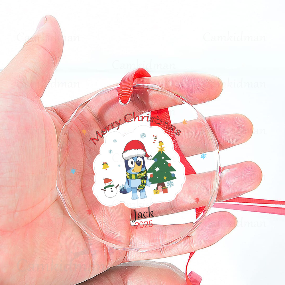 Personalized Name Bluey and Family with Christmas Tree 2025 Glass Holiday Ceramic Ornament Glass Ornament Decoration