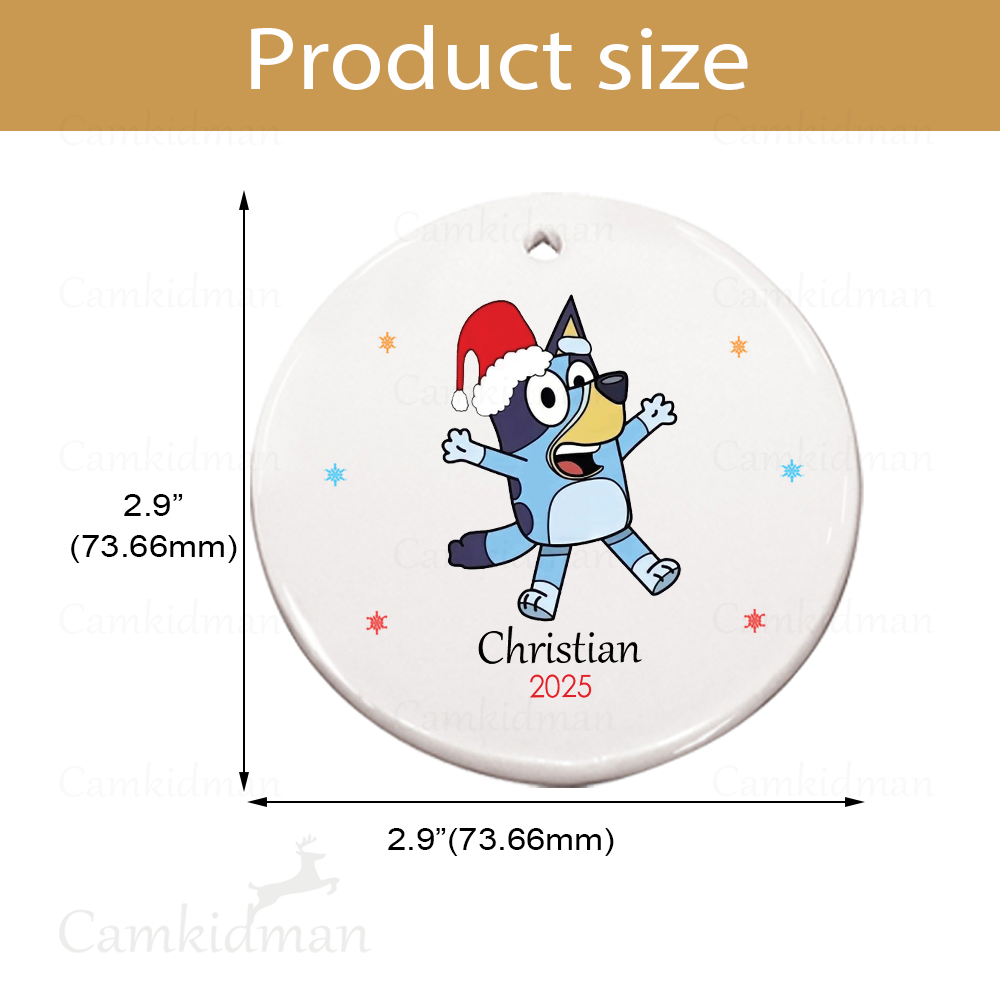 Personalized Name Bluey Cartoon Character 2025 Glass Christmas Ornament Decoration