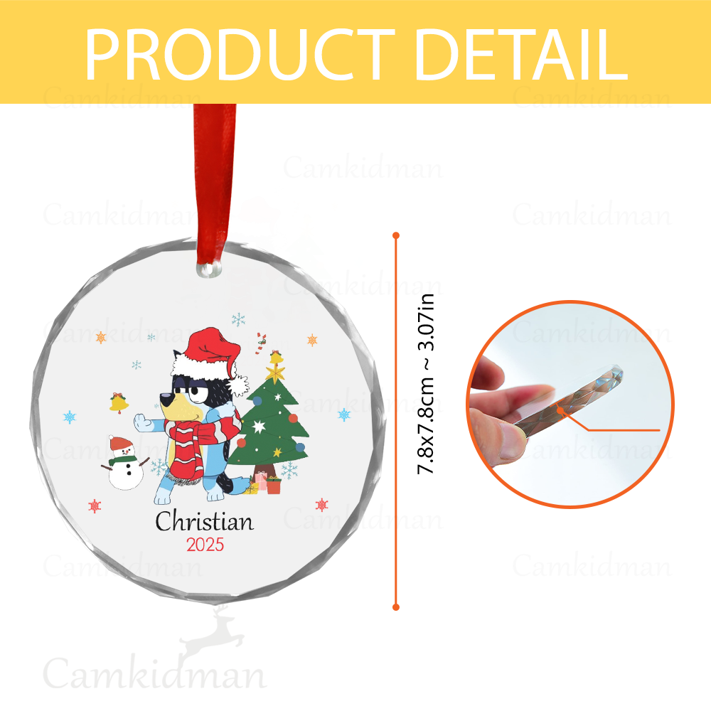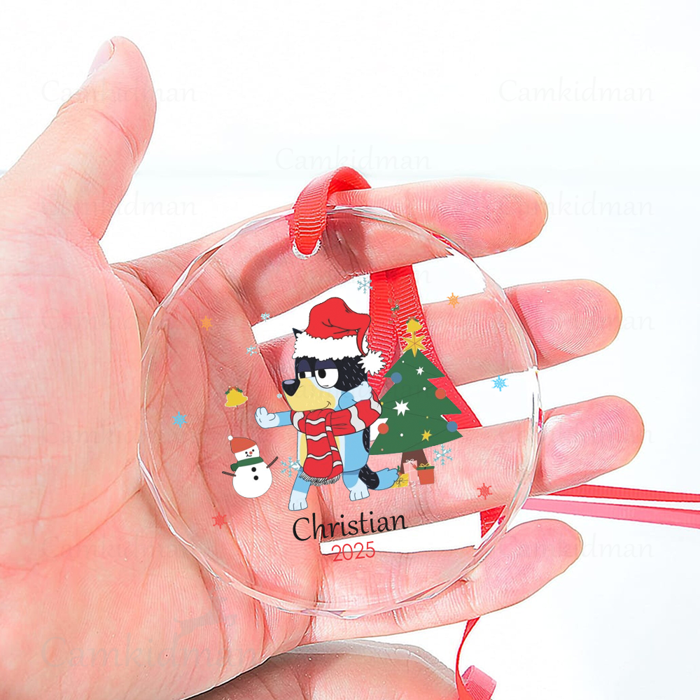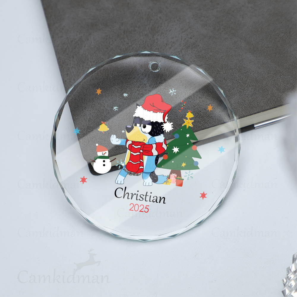 Personalized Name Bluey Cartoon Christmas Scene 2025 Glass Holiday Glass Ornament Decoration