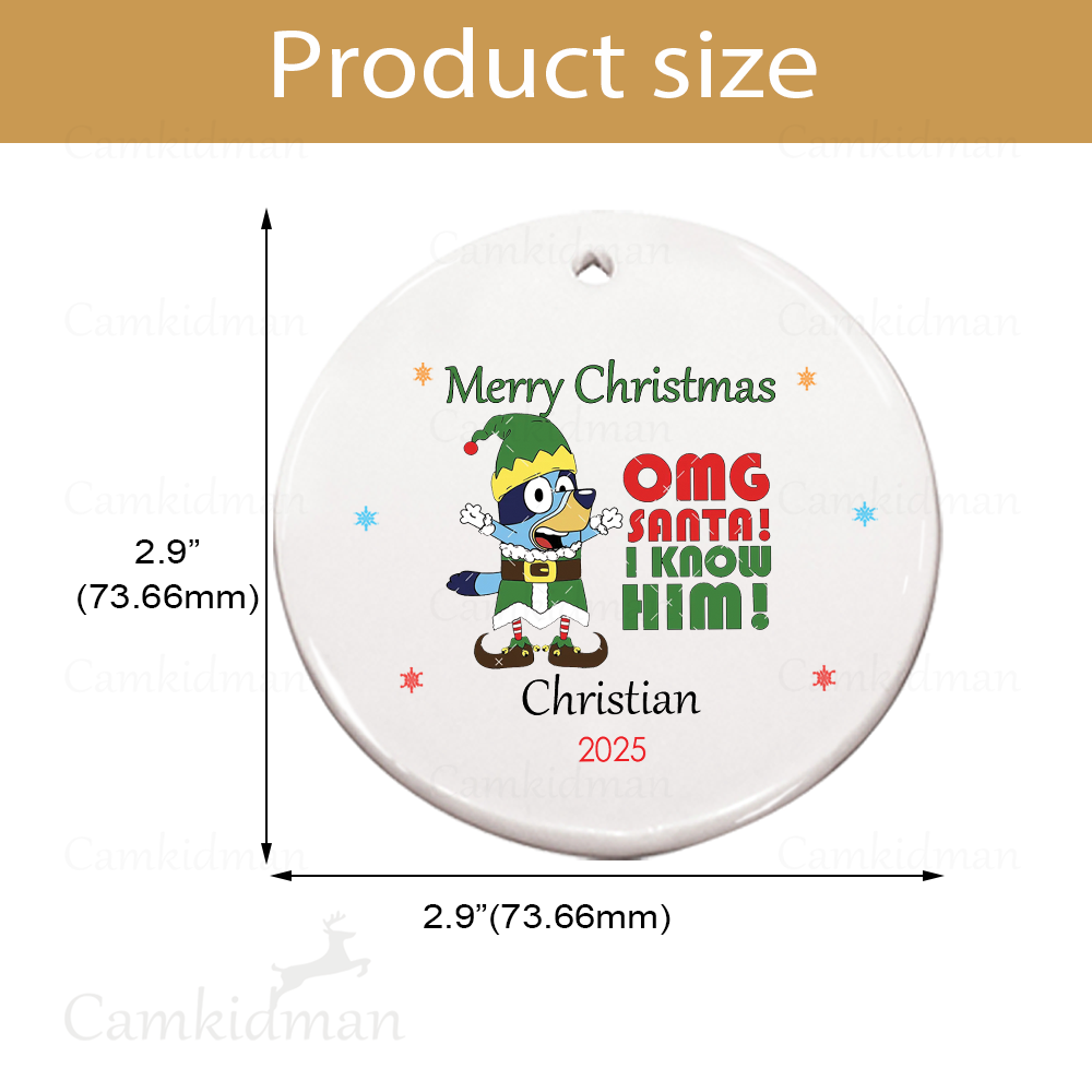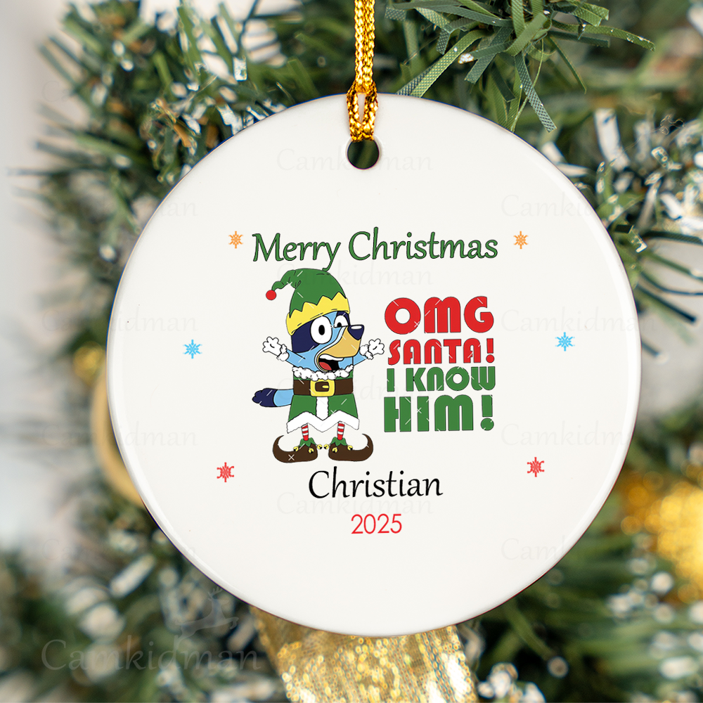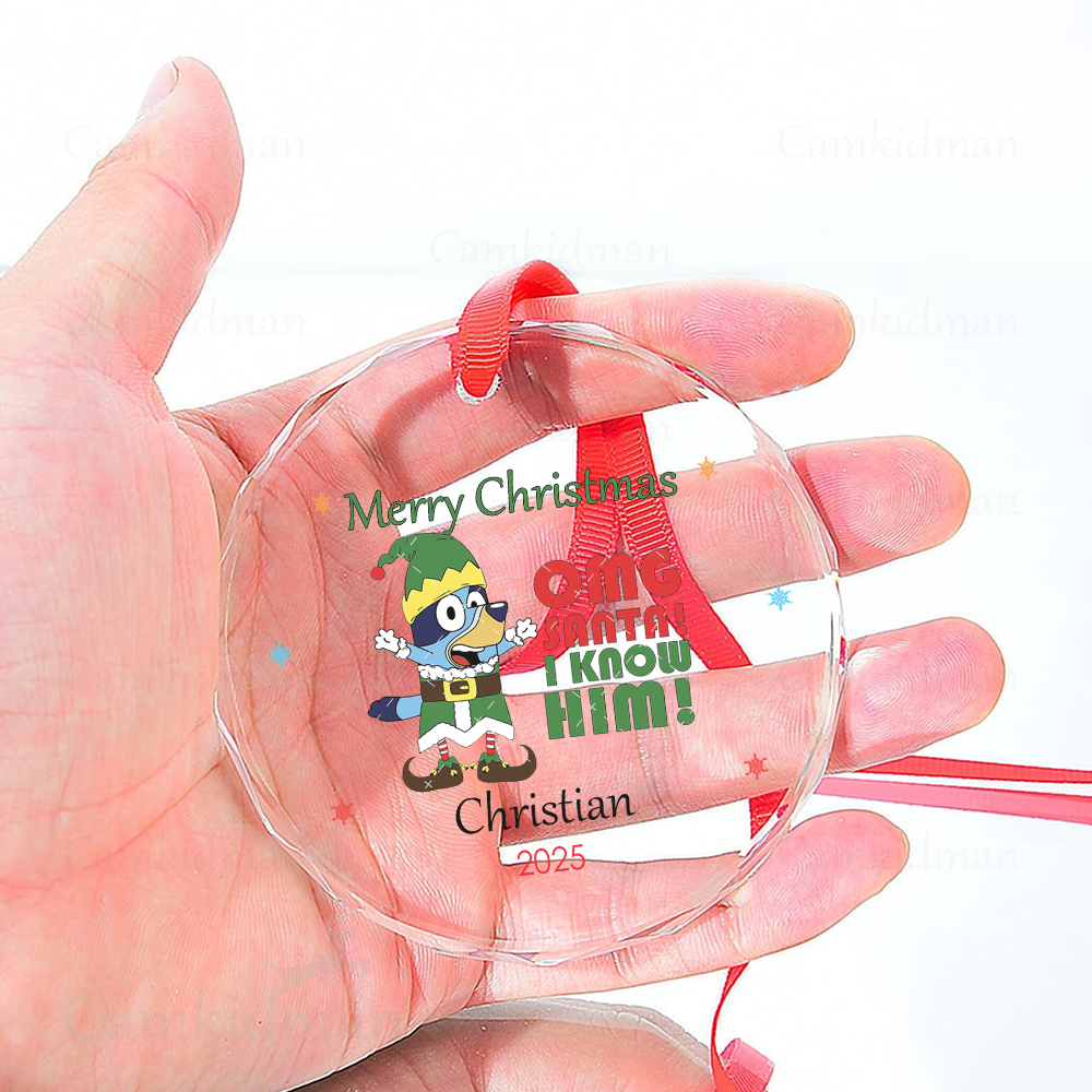 Personalized Name Bluey Cartoon Family Christmas 2025 Ceramic Ornament Glass Ornament
