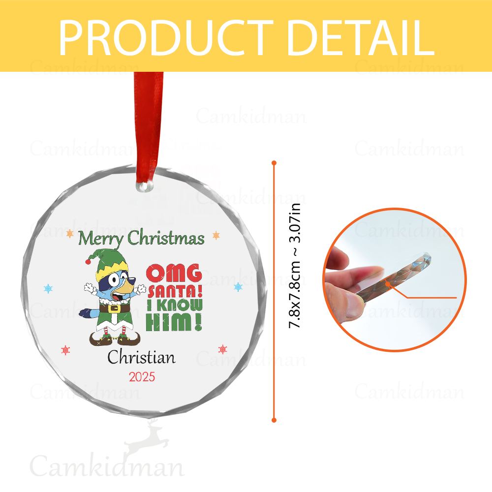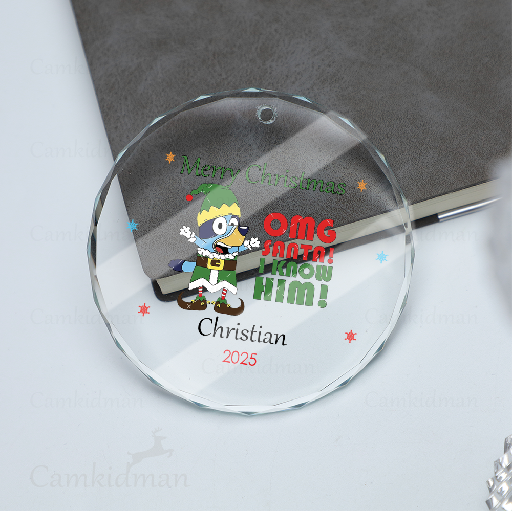 Personalized Name Bluey Cartoon Family Christmas 2025 Glass Ornament