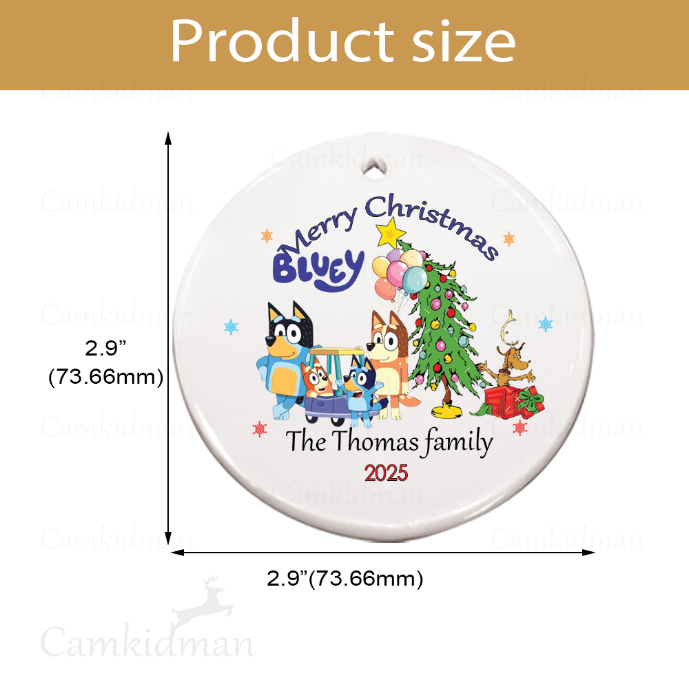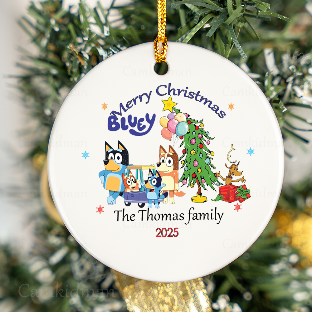 Personalized Name Bluey Cartoon Family Merry Christmas 2025 Glass Holiday Ceramic Ornament Glass Ornament Decoration