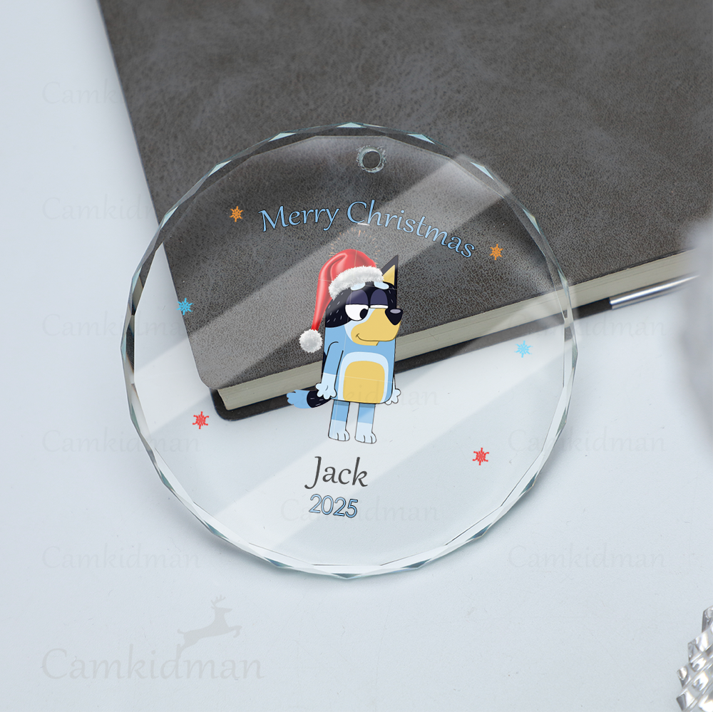 Personalized Name Bluey Character Christmas Glass Ornament gifts