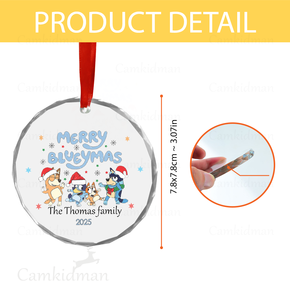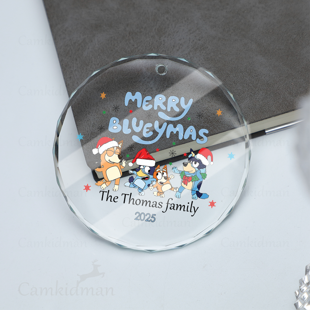 Be the first to review “Personalized Name Bluey Character with Santa Hat and Tree 2025 Glass Christmas Ornament”