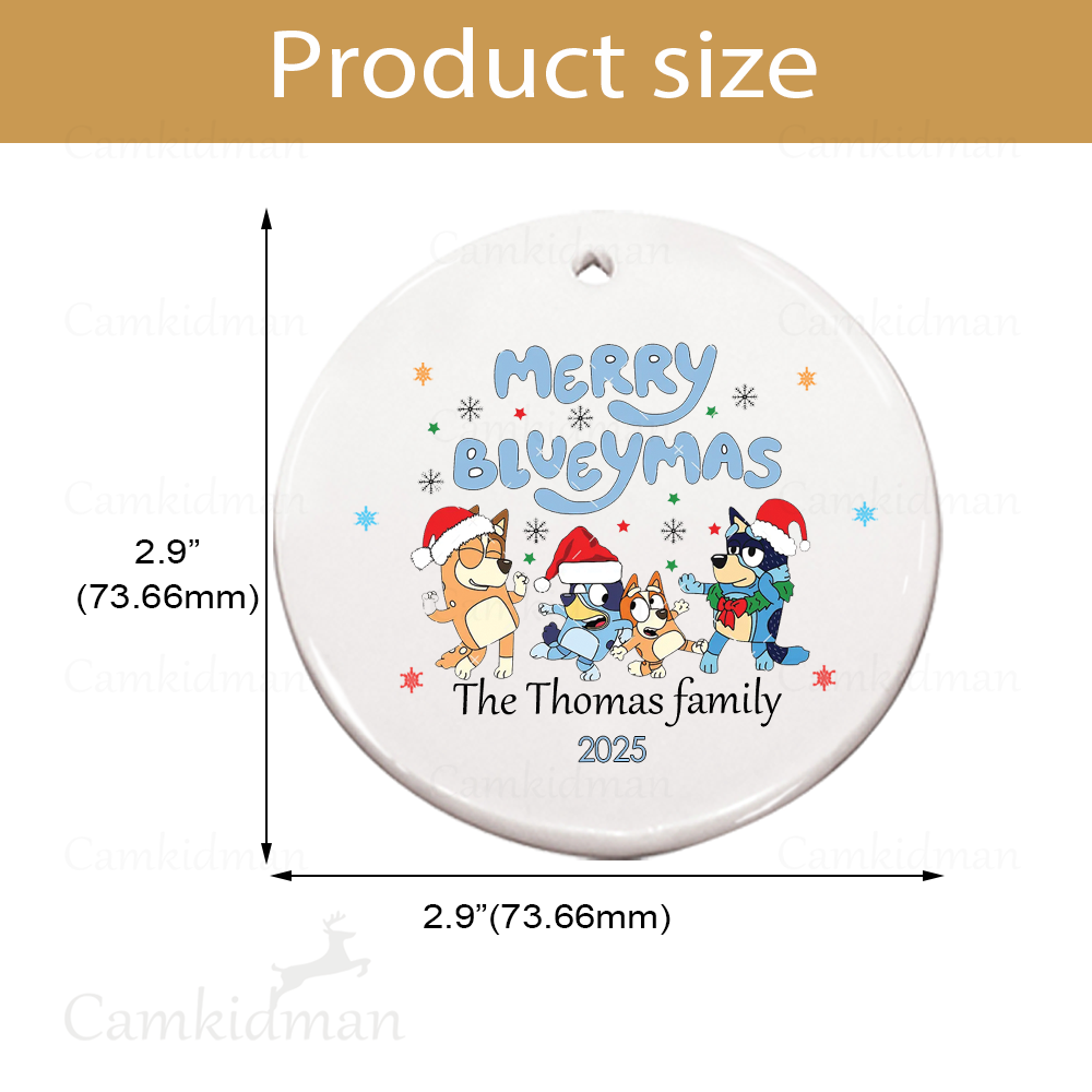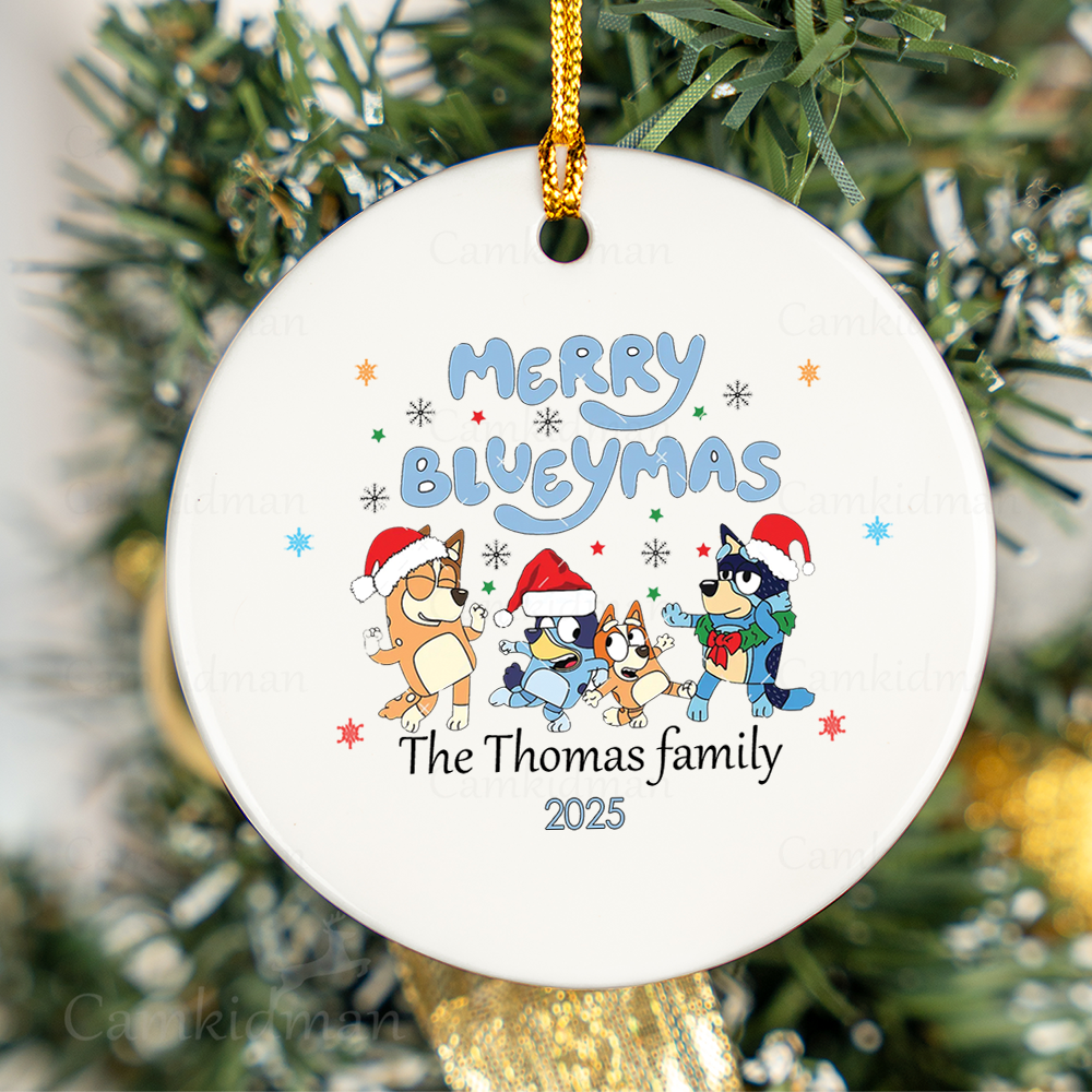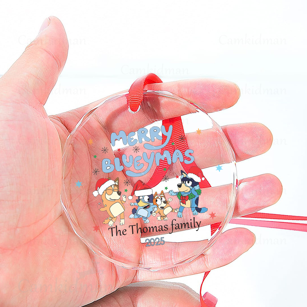 Be the first to review “Personalized Name Bluey Character with Santa Hat and Tree 2025 Glass Christmas Ornament”