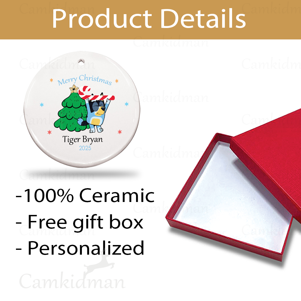 Personalized Name Bluey children’s gifts Christmas Ceramic Ornament Glass Ornament gifts