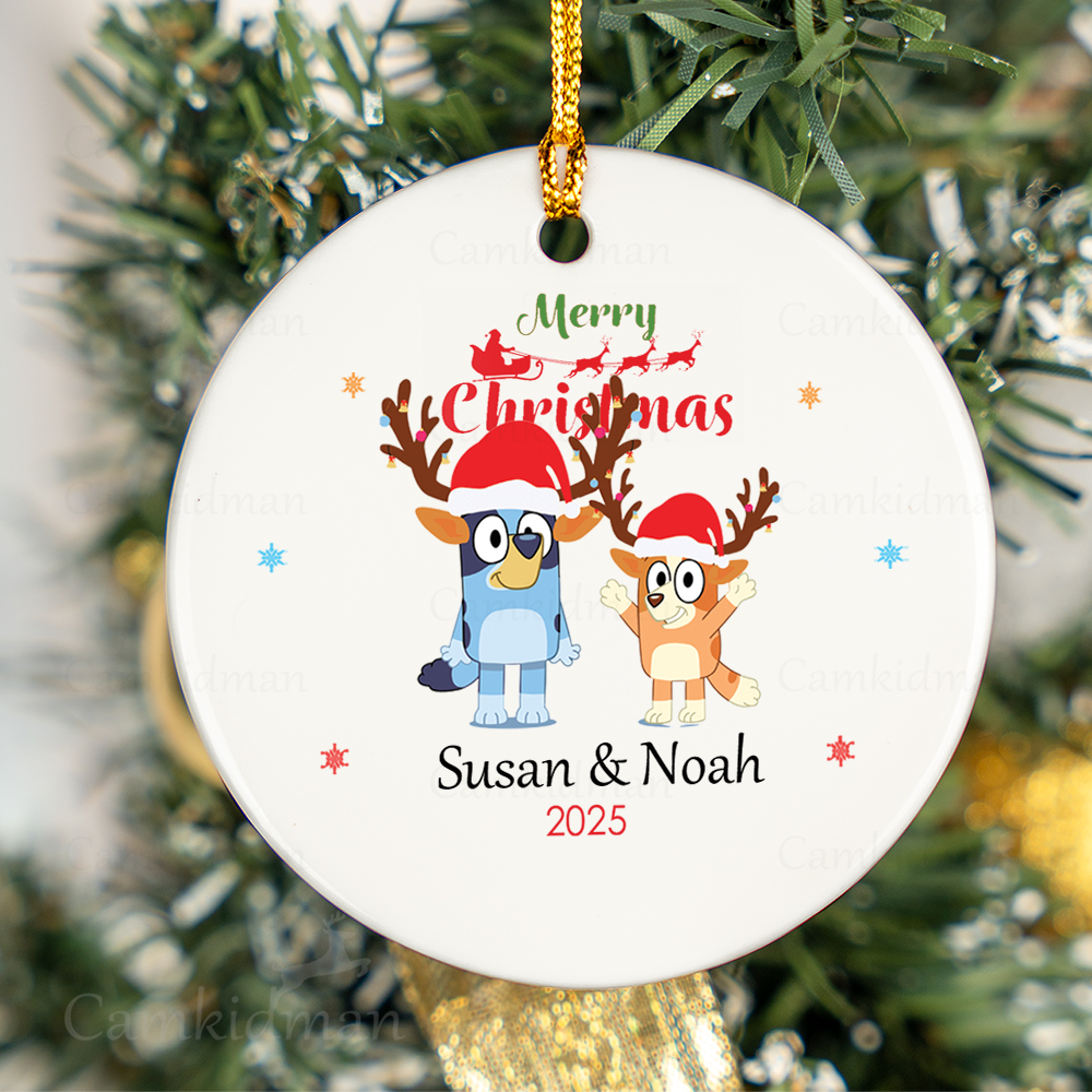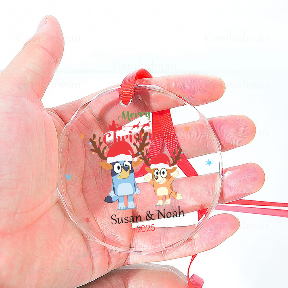 Personalized Name Bluey children’s gifts Christmas Ceramic Ornament Glass Ornament gifts family