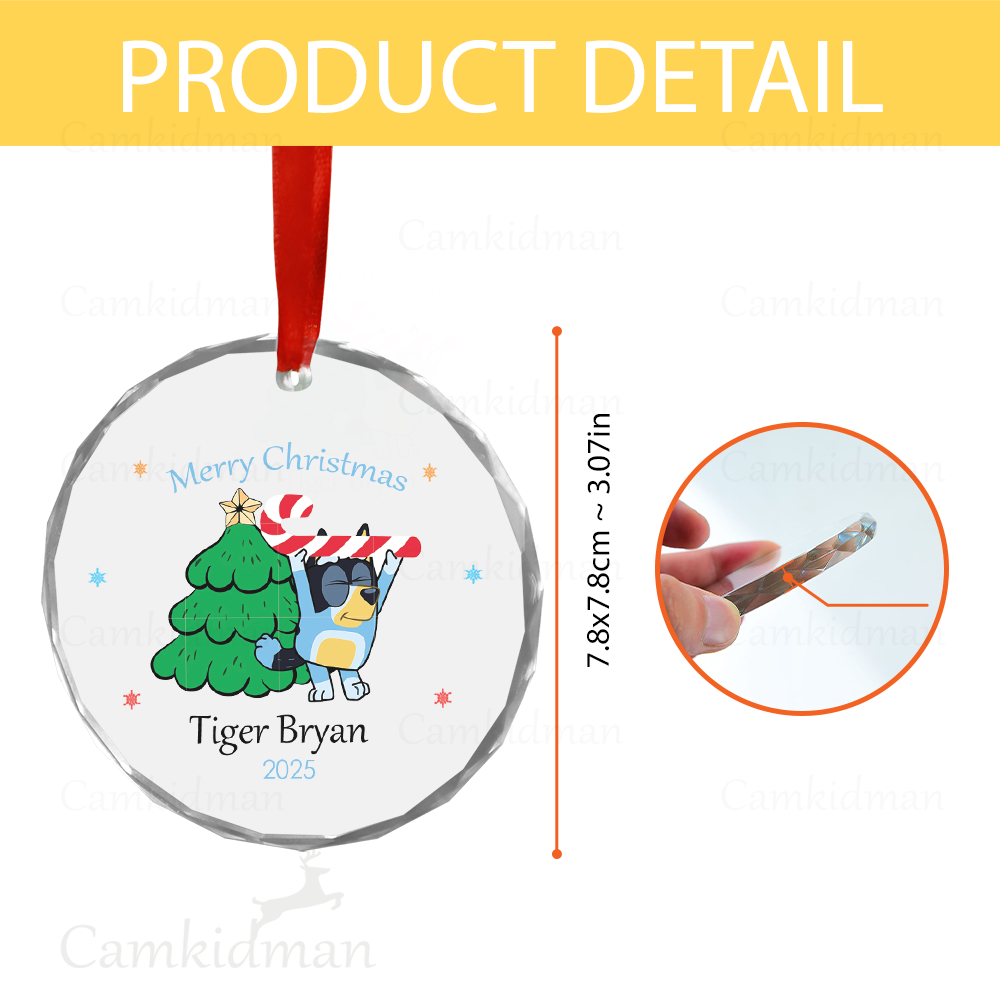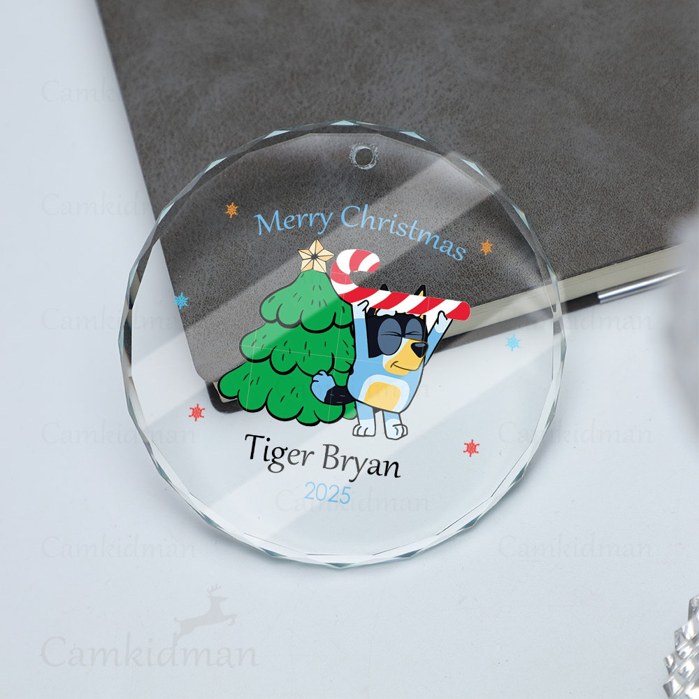 Personalized Name Bluey children’s gifts Christmas Glass Ornament gifts