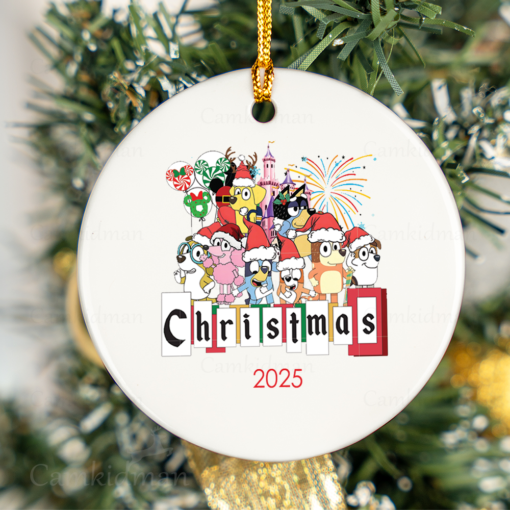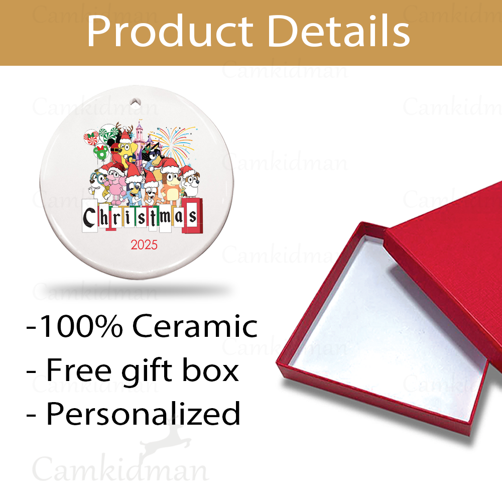Personalized Name Bluey Christmas Celebration 2025 Christmas Ceramic Ornament Glass Ornament gifts kids