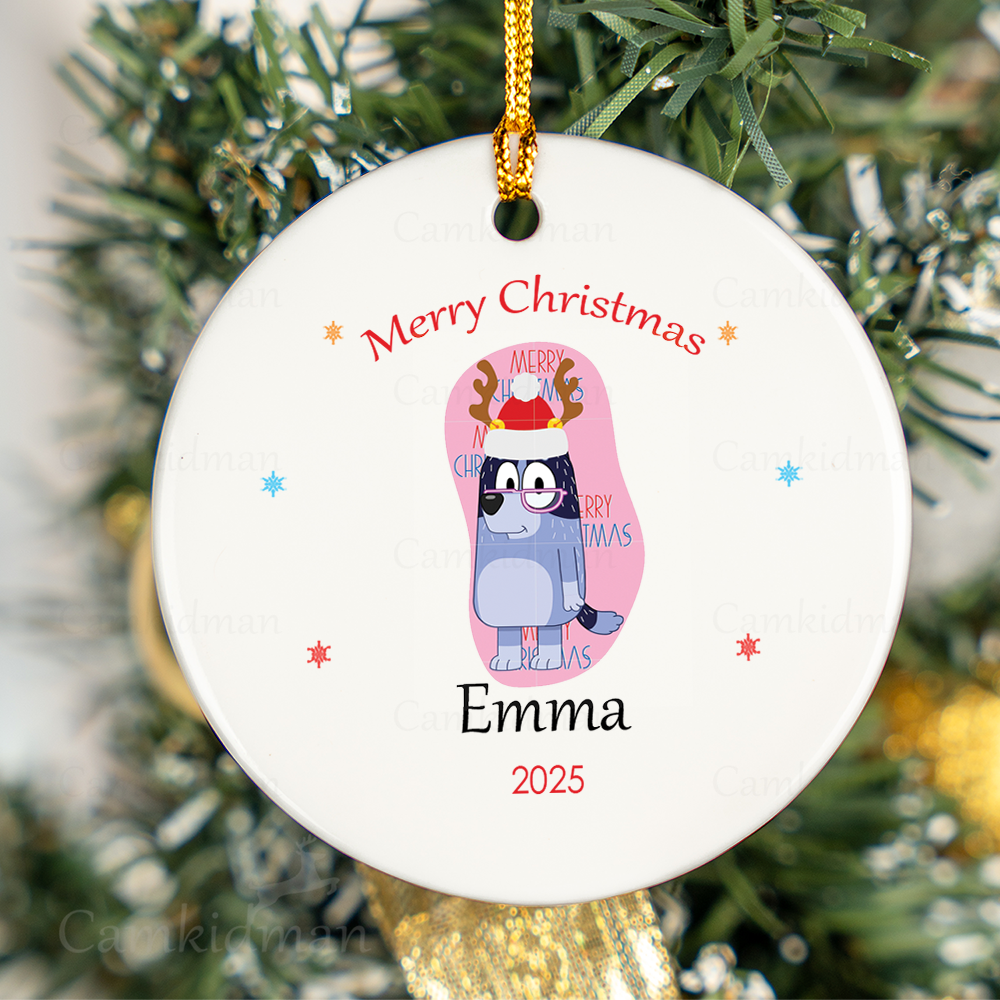 Personalized Name Bluey Couple Christmas Tree 2025 Christmas Ceramic Ornament Glass Ornament tree