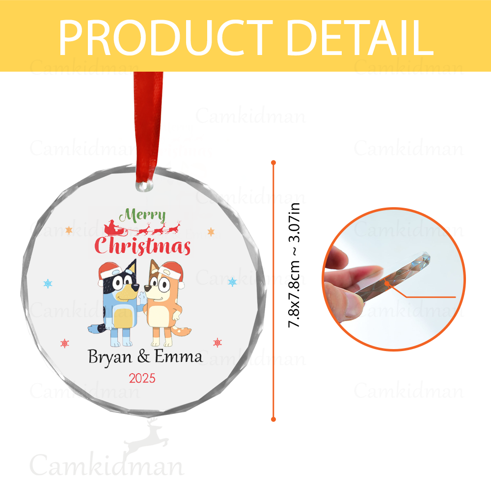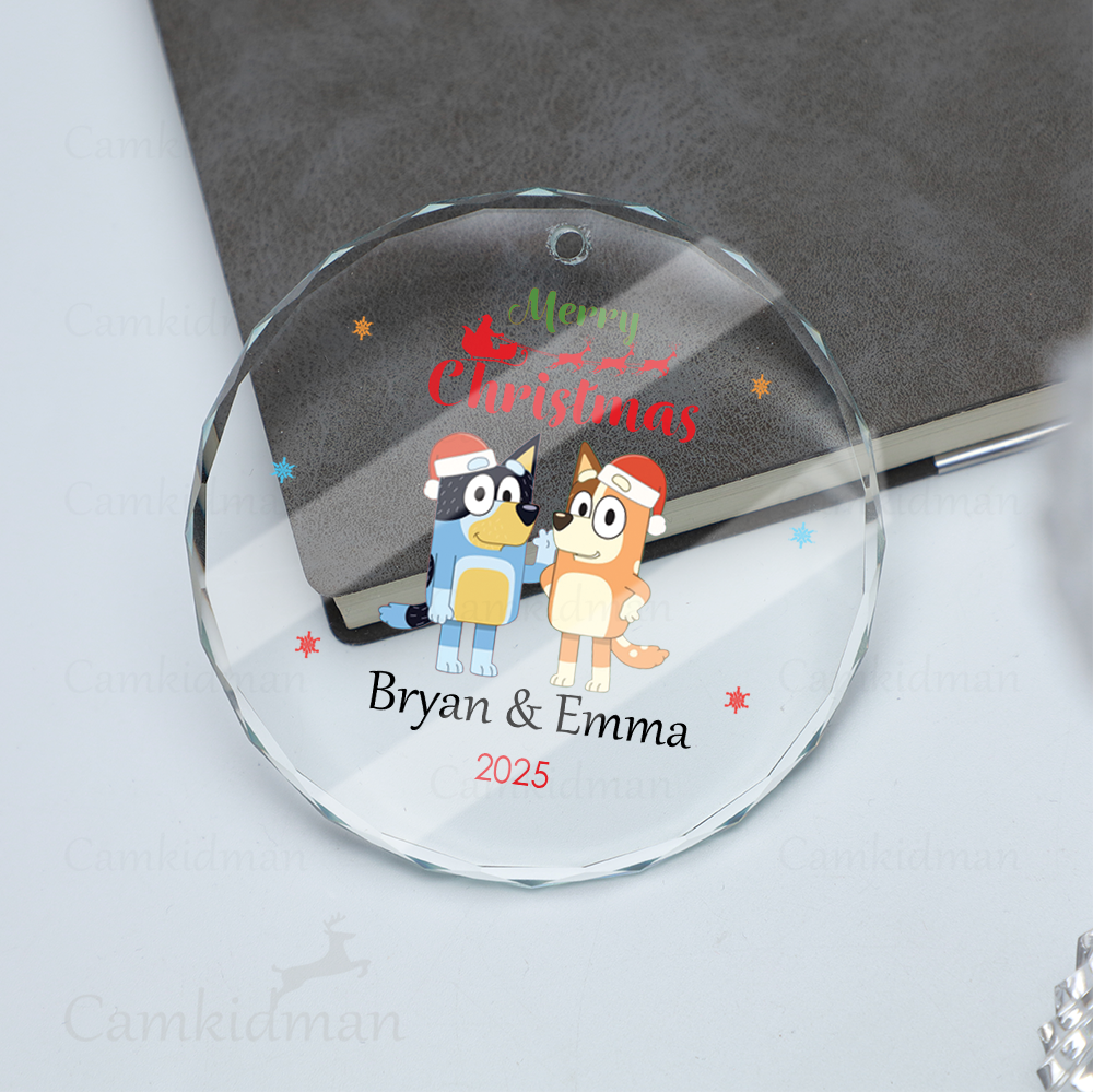 Personalized Name Bluey Couple With Gift Christmas Glass Ornament gifts family