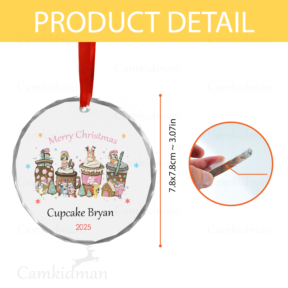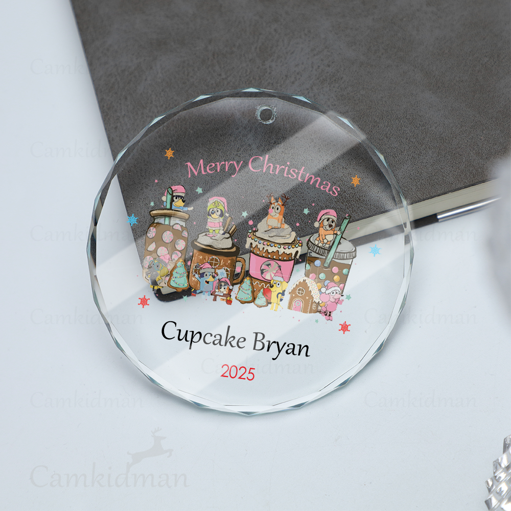 Personalized Name Bluey Cupcake Christmas Glass Ornament gifts family
