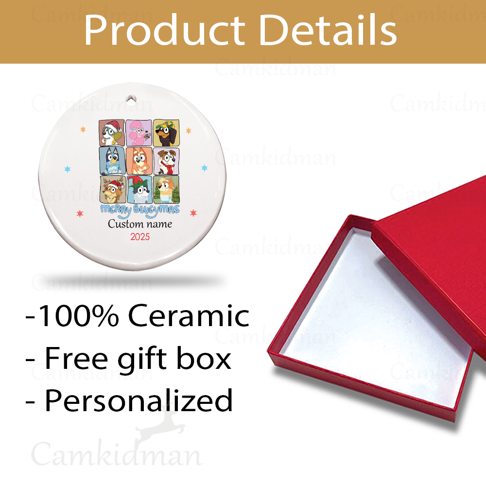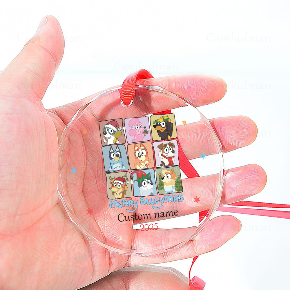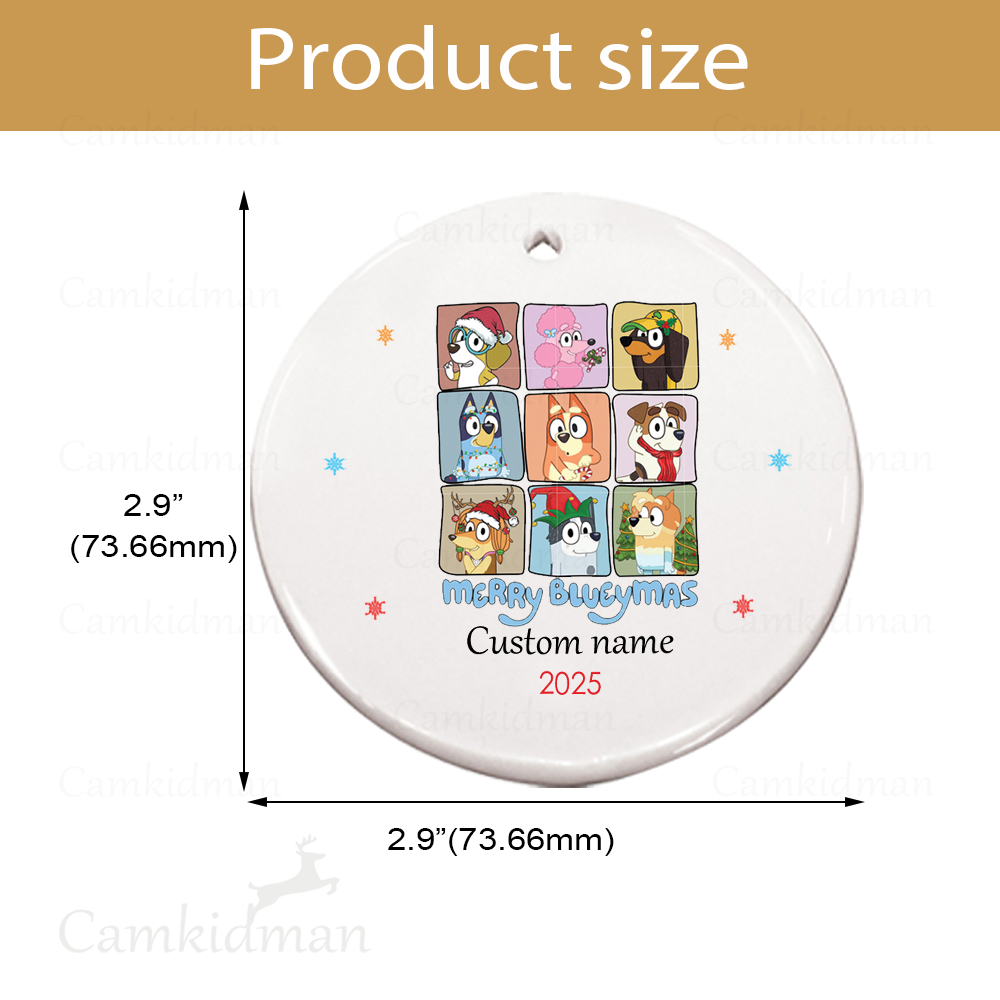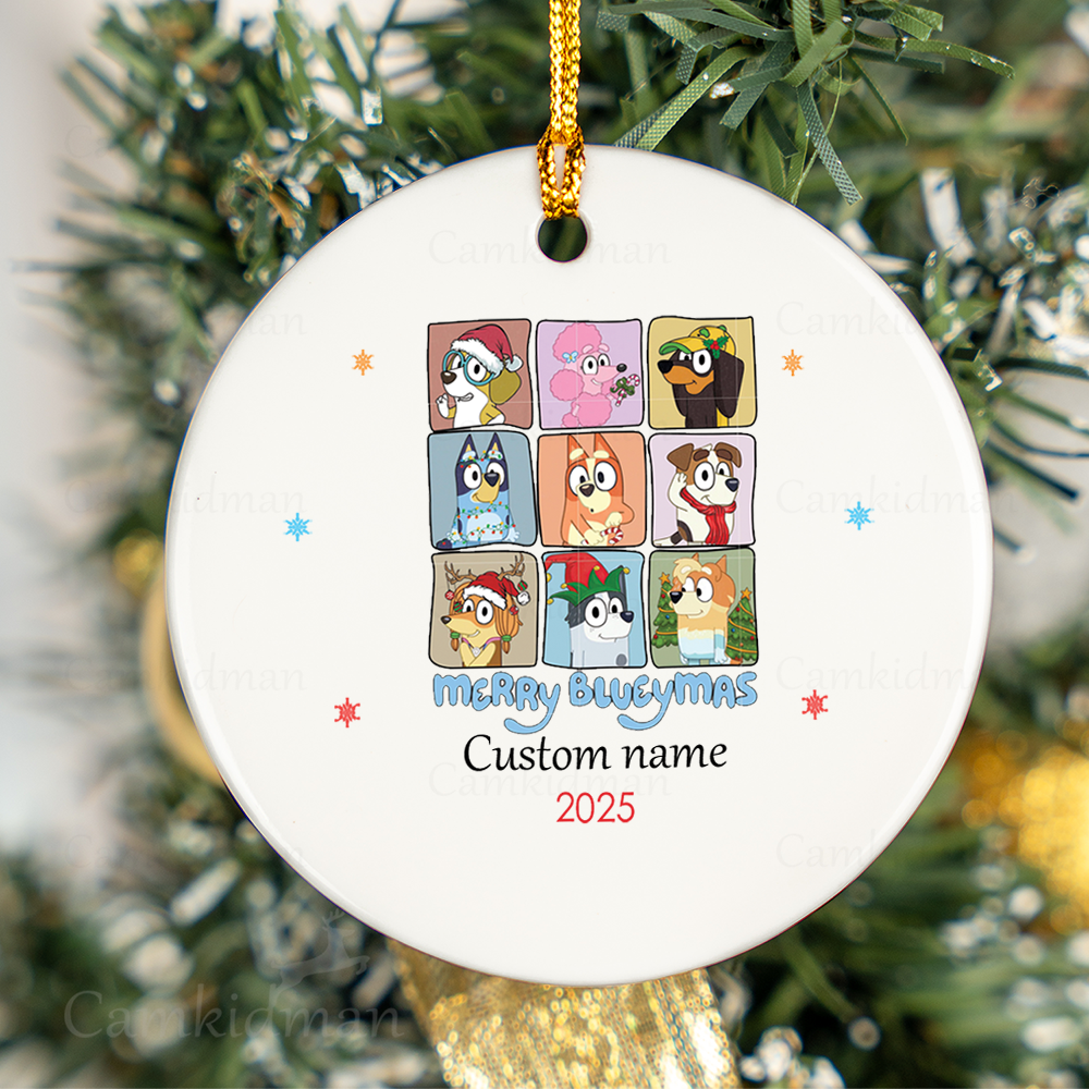 Personalized Name Bluey Custom Name Grid 2025 Christmas Ceramic Ornament Glass Ornament gifts family