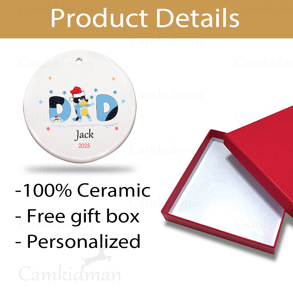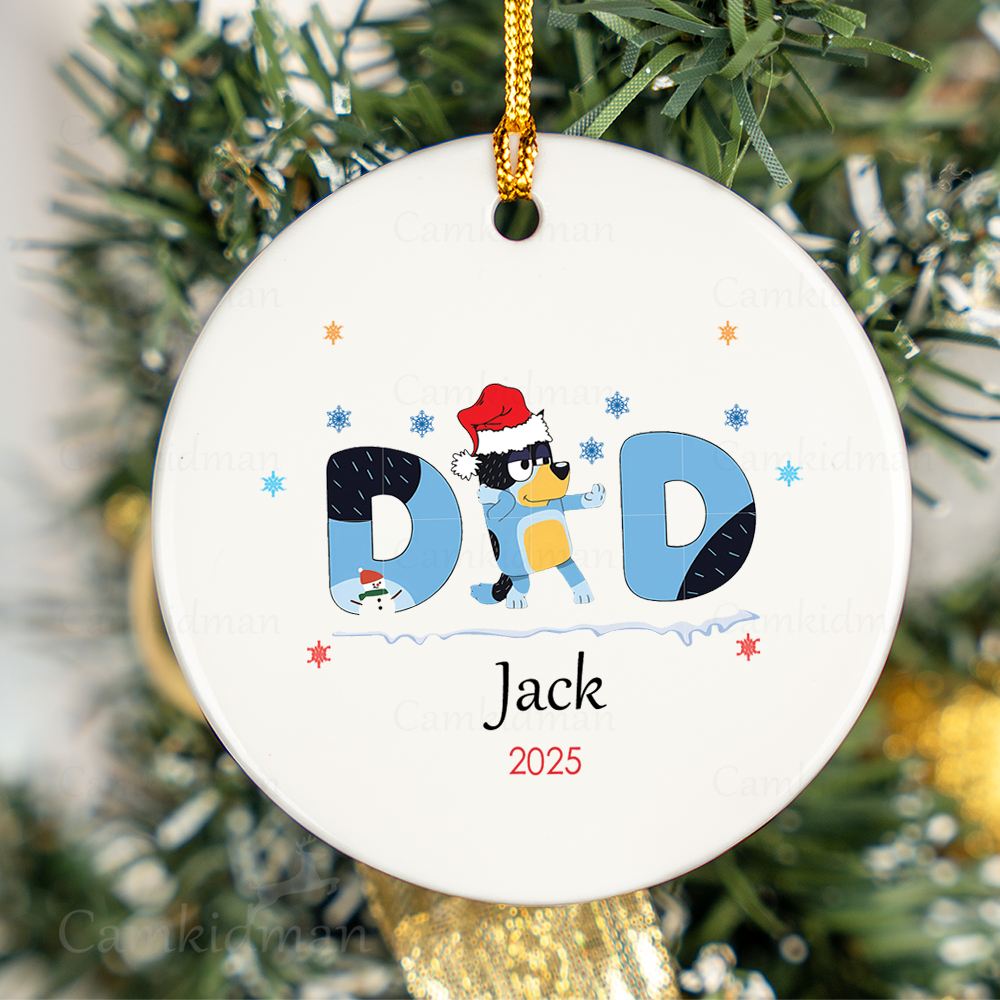 Personalized Name Bluey Dad Ceramic Ornament Glass Ornament 2025 Christmas Ceramic Ornament Glass Ornament tree