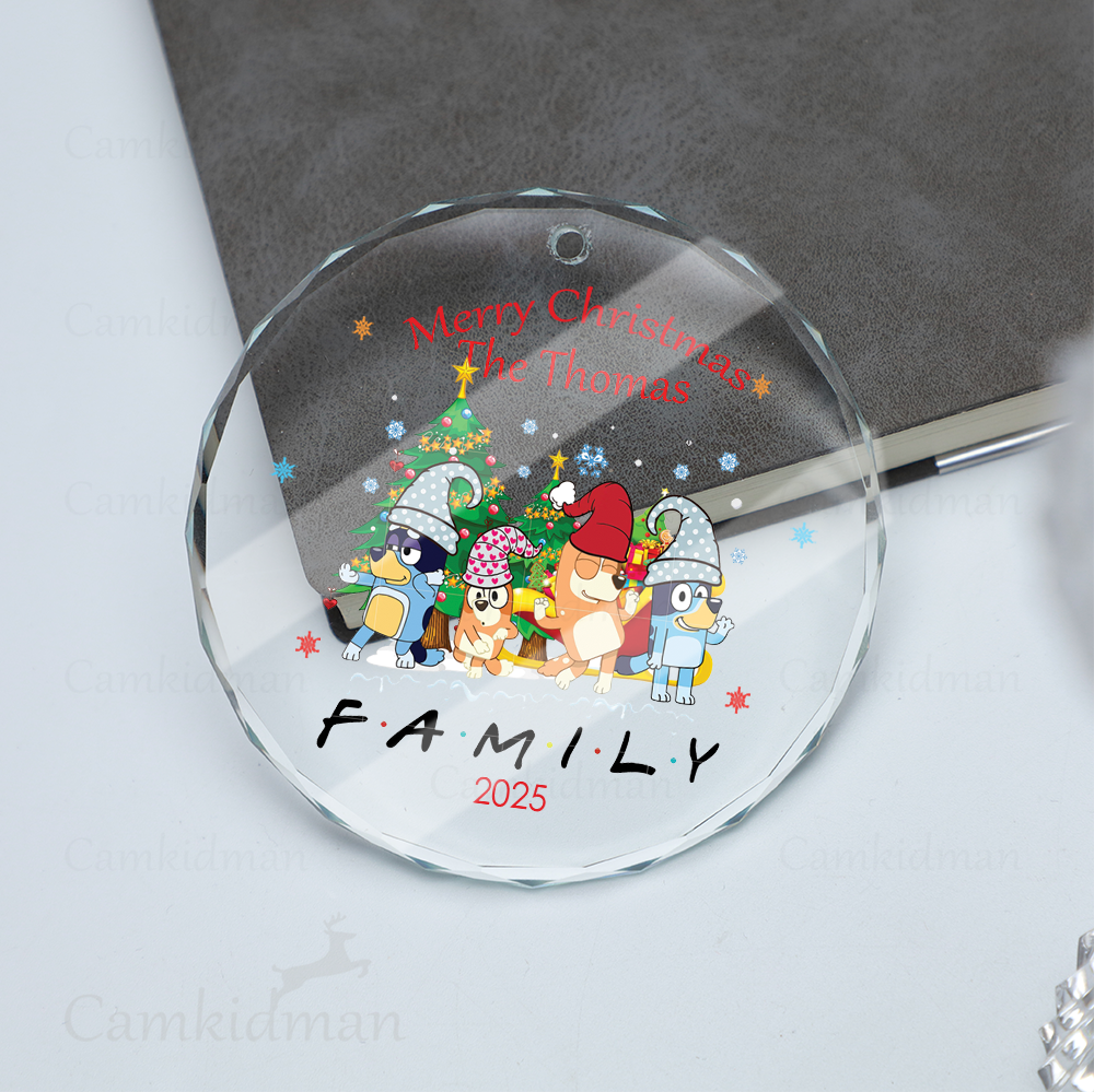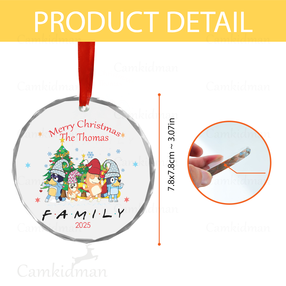 Personalized Name Bluey Family Characters 2025 Christmas Glass Ornament gifts