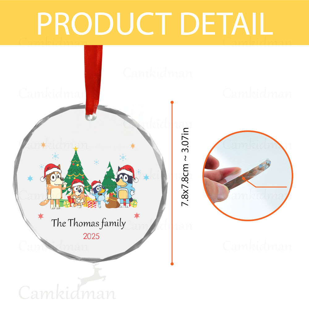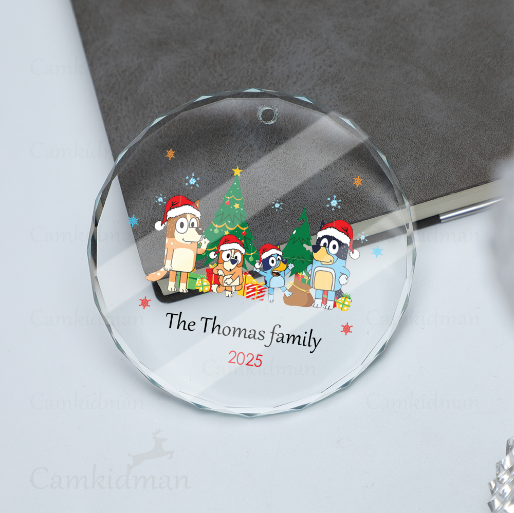 Personalized Name Bluey Family Christmas 2025 Christmas Glass Ornament gifts family