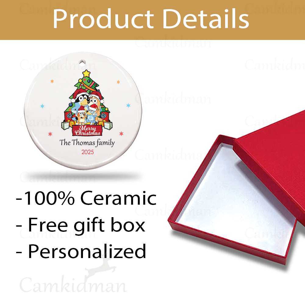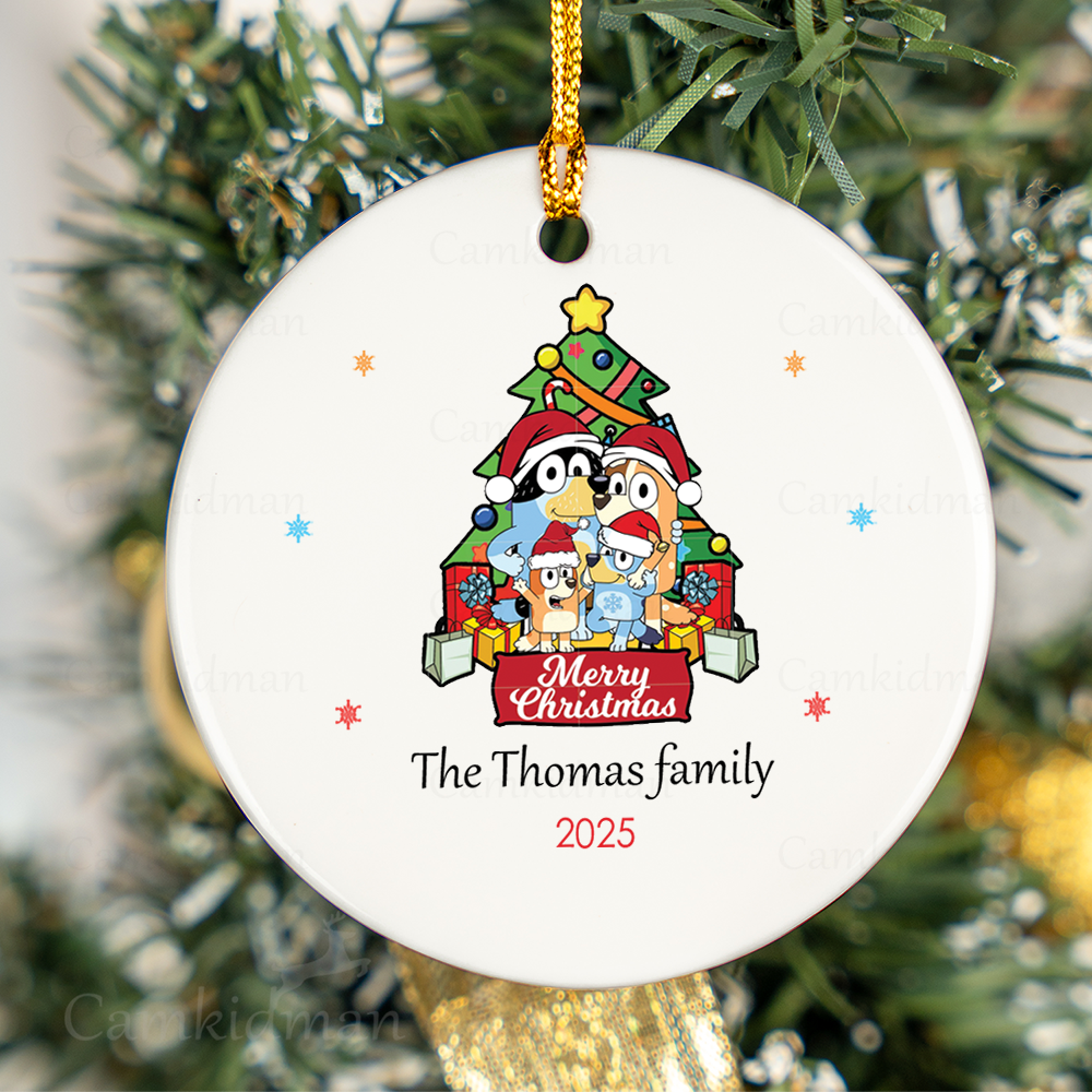 Personalized Name Bluey Family Christmas Tree 2025 Christmas Ceramic Ornament Glass Ornament gifts family