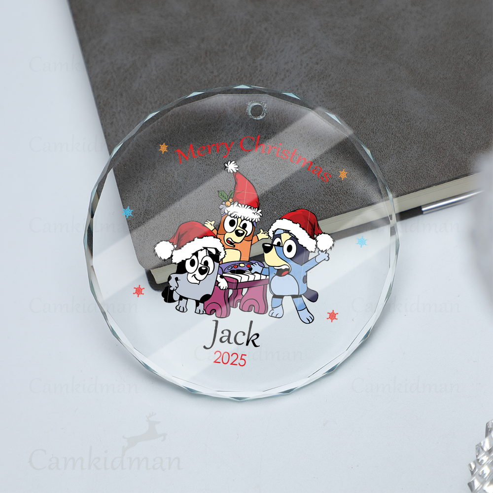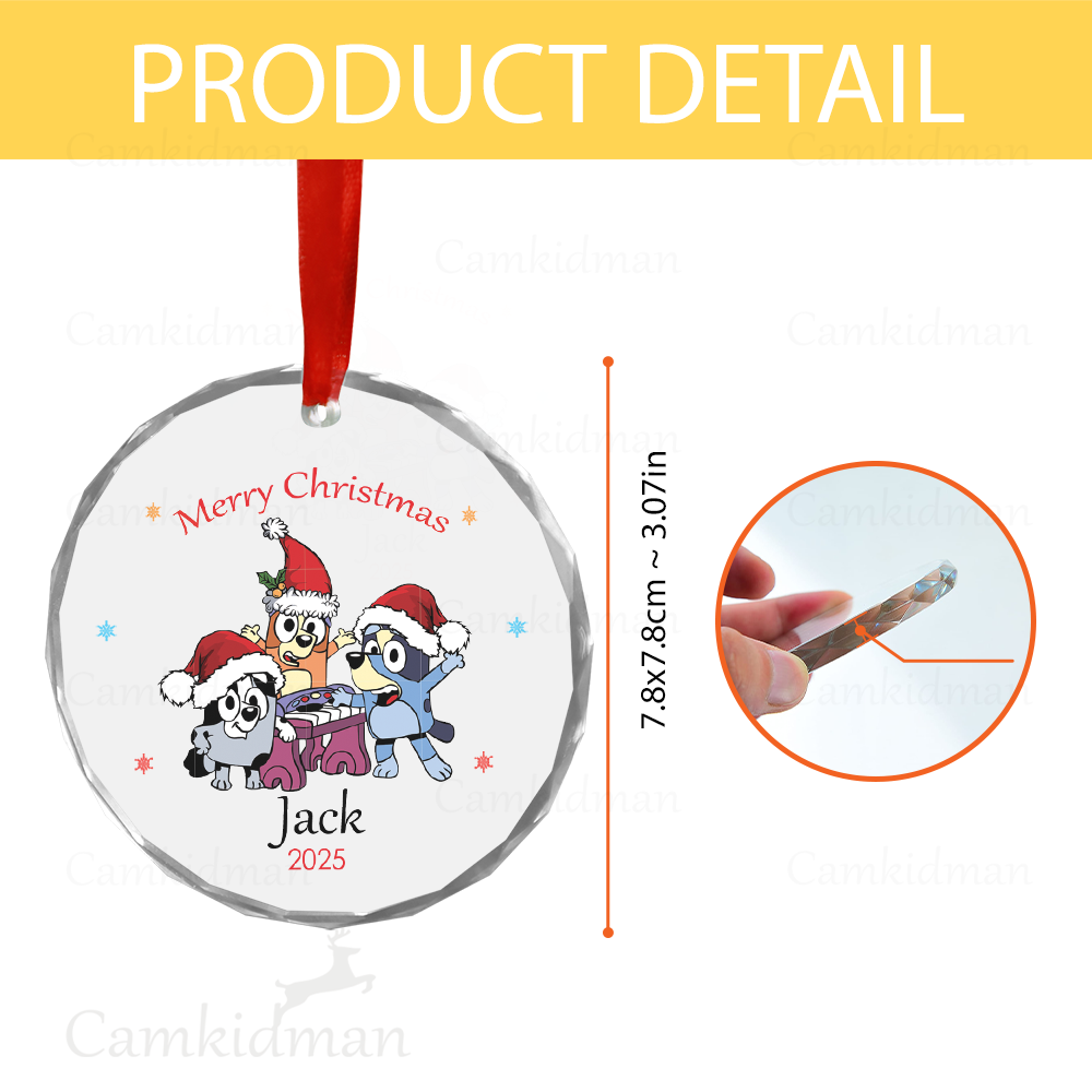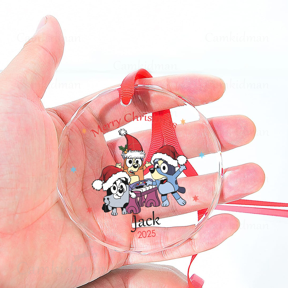 Personalized Name Bluey Family Gifts 2025 Christmas Glass Ornament tree