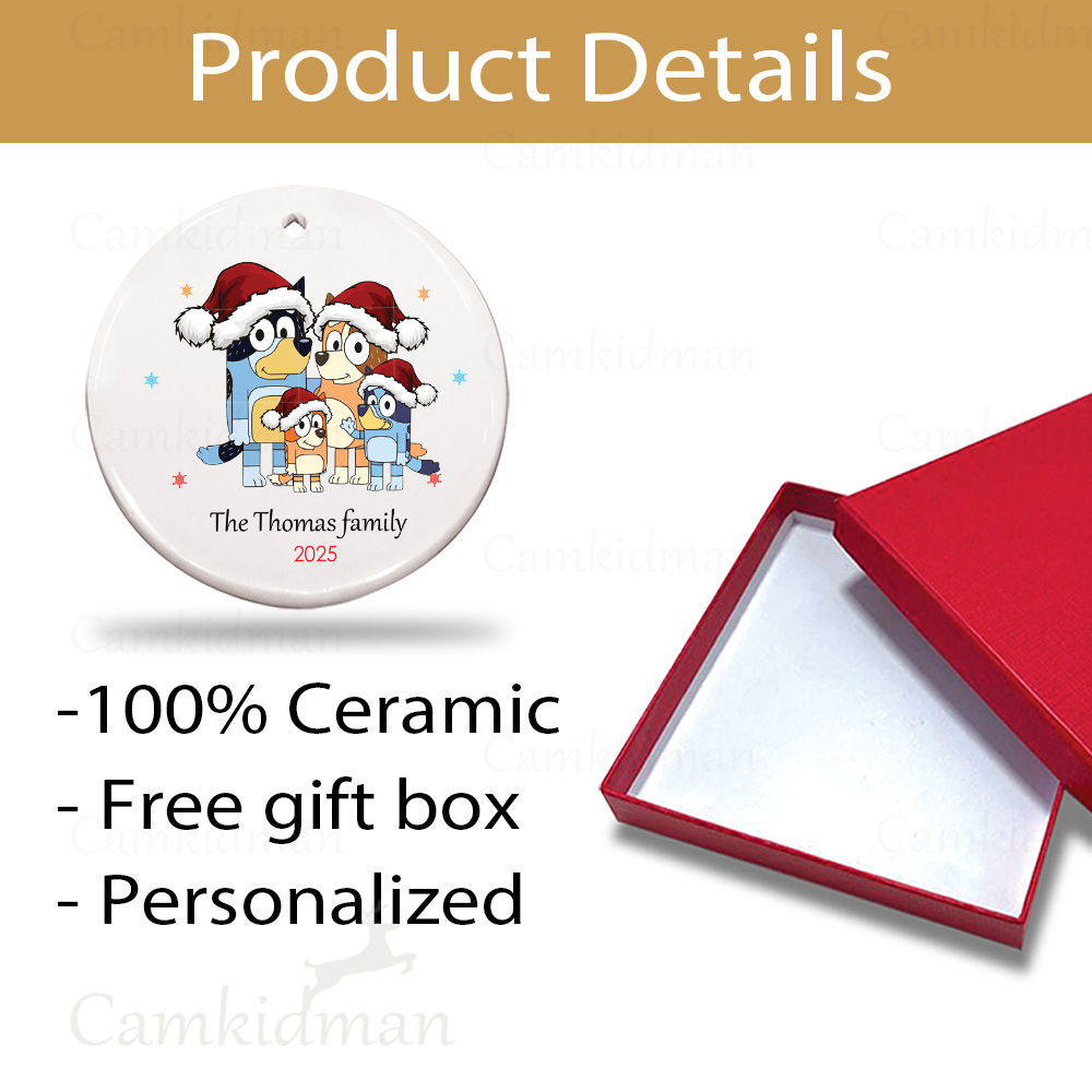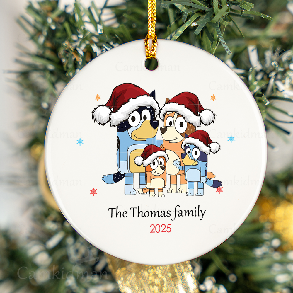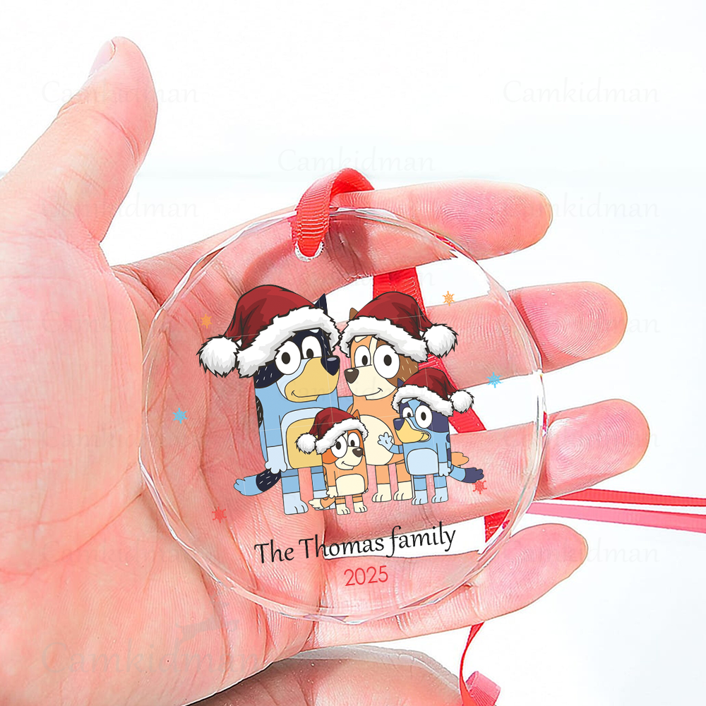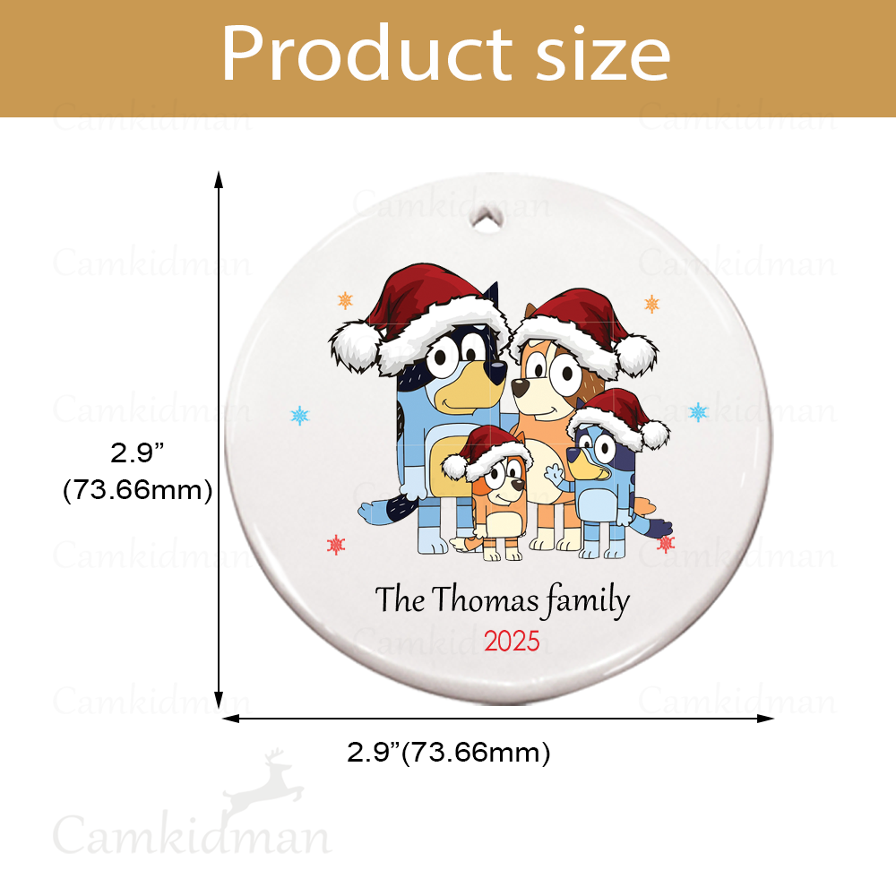 Personalized Name Bluey Family Portrait 2025 Christmas Ceramic Ornament Glass Ornament gifts family
