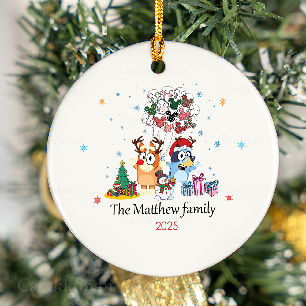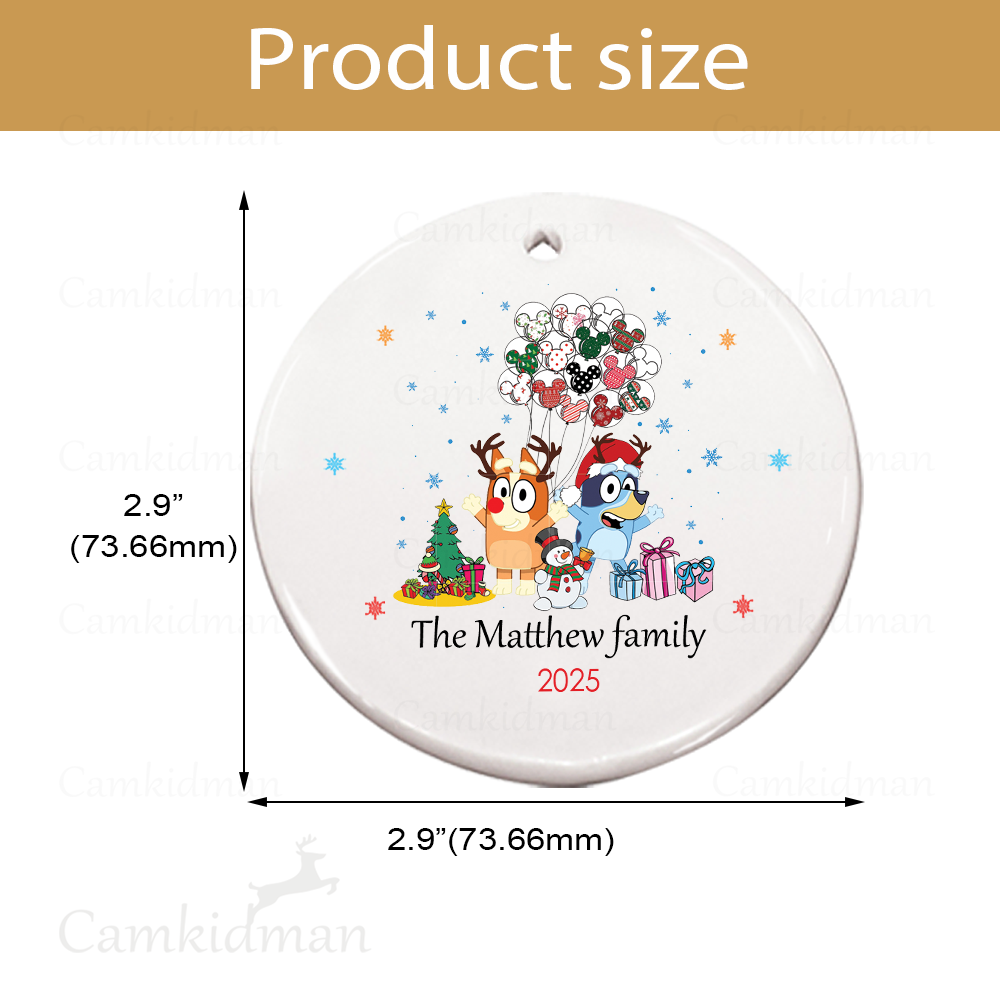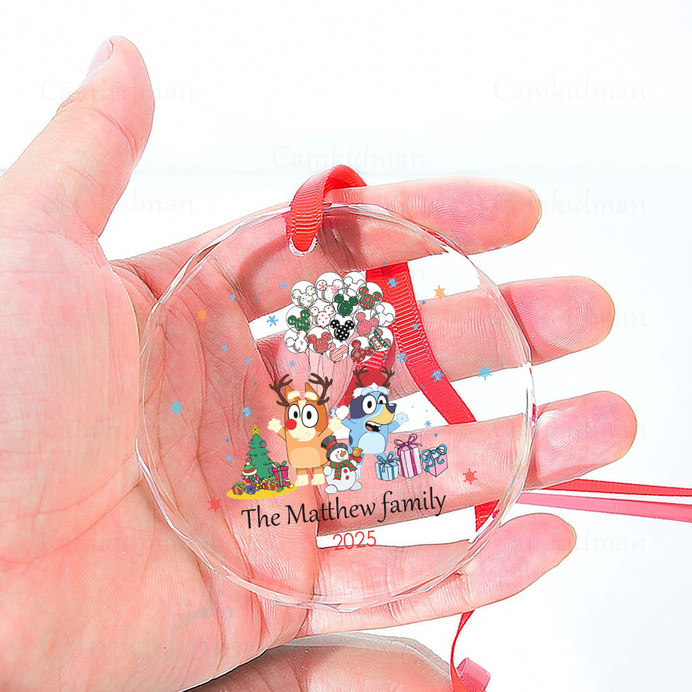 Personalized Name Bluey Family Reindeer Tree 2025 Christmas Ceramic Ornament Glass Ornament gifts family