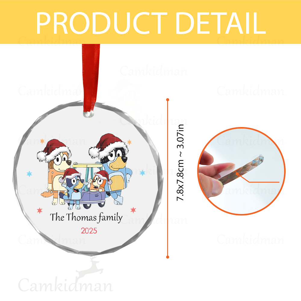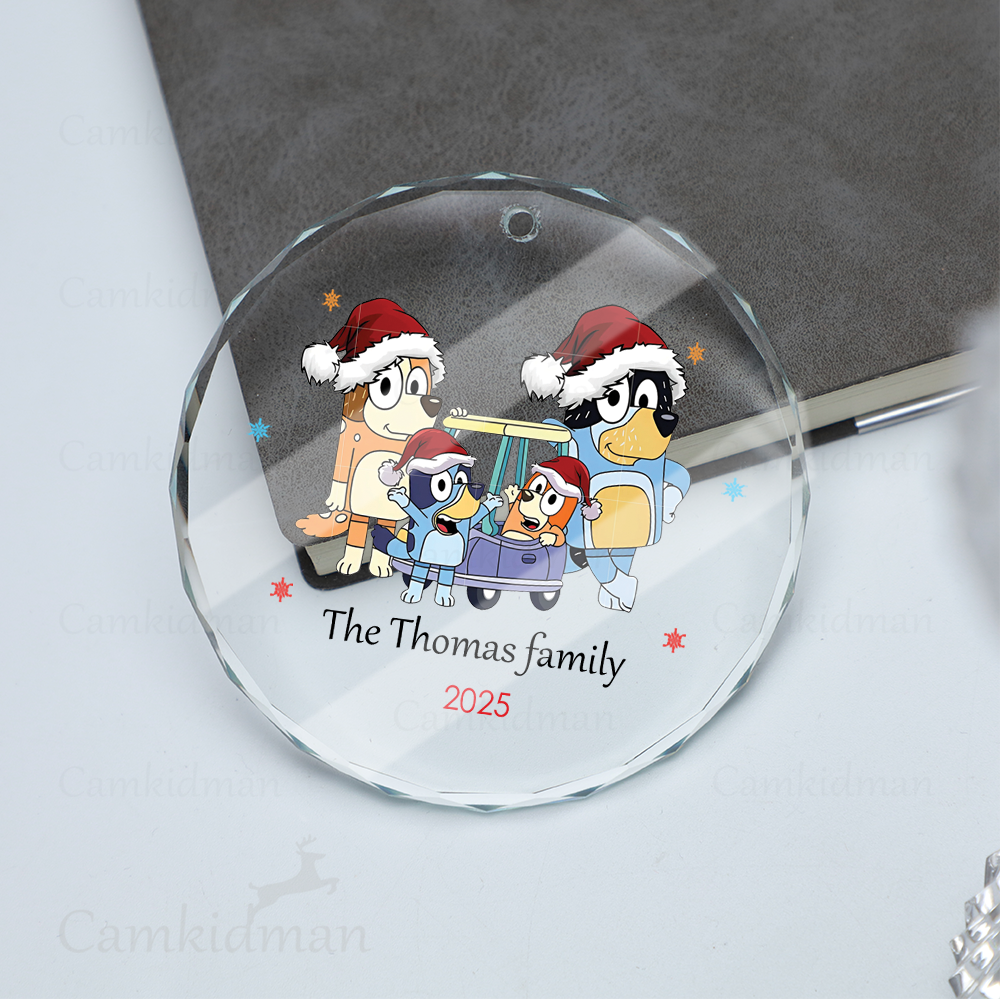 Personalized Name Bluey Family Sleigh Ride 2025 Christmas Glass Ornament gifts family