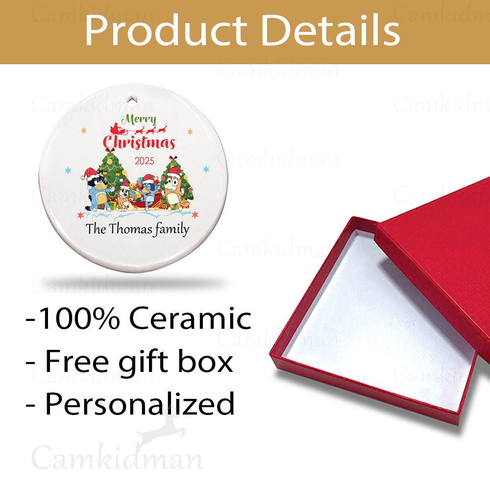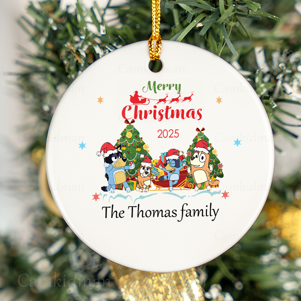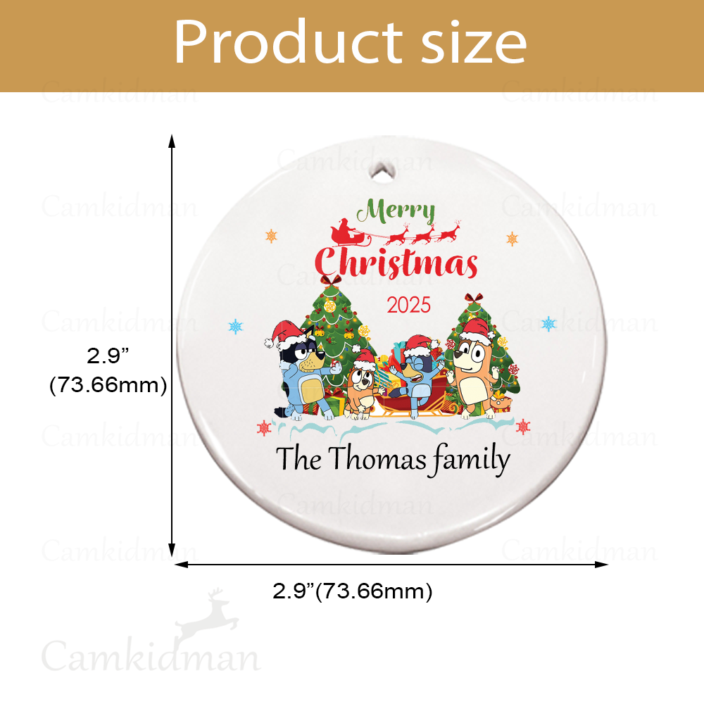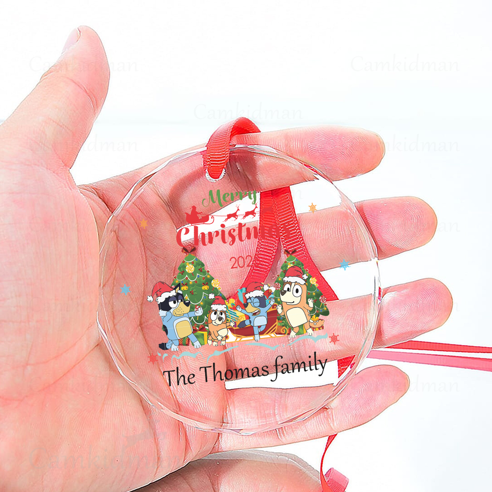 Personalized Name Bluey Family With Tree Christmas Ceramic Ornament Glass Ornament gifts family