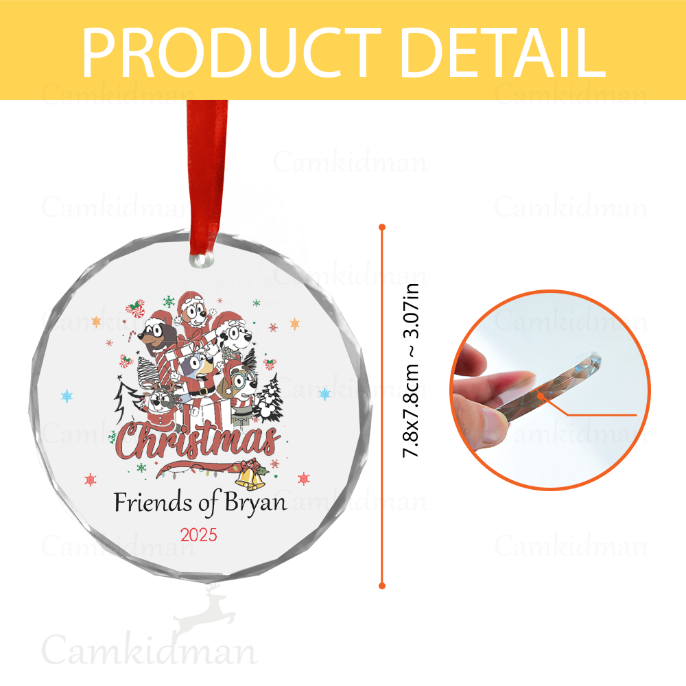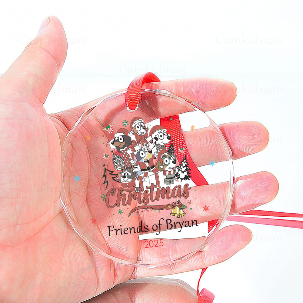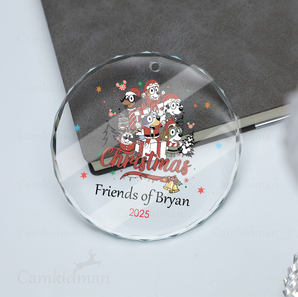 Personalized Name Bluey Friends Characters Christmas Glass Ornament gifts family
