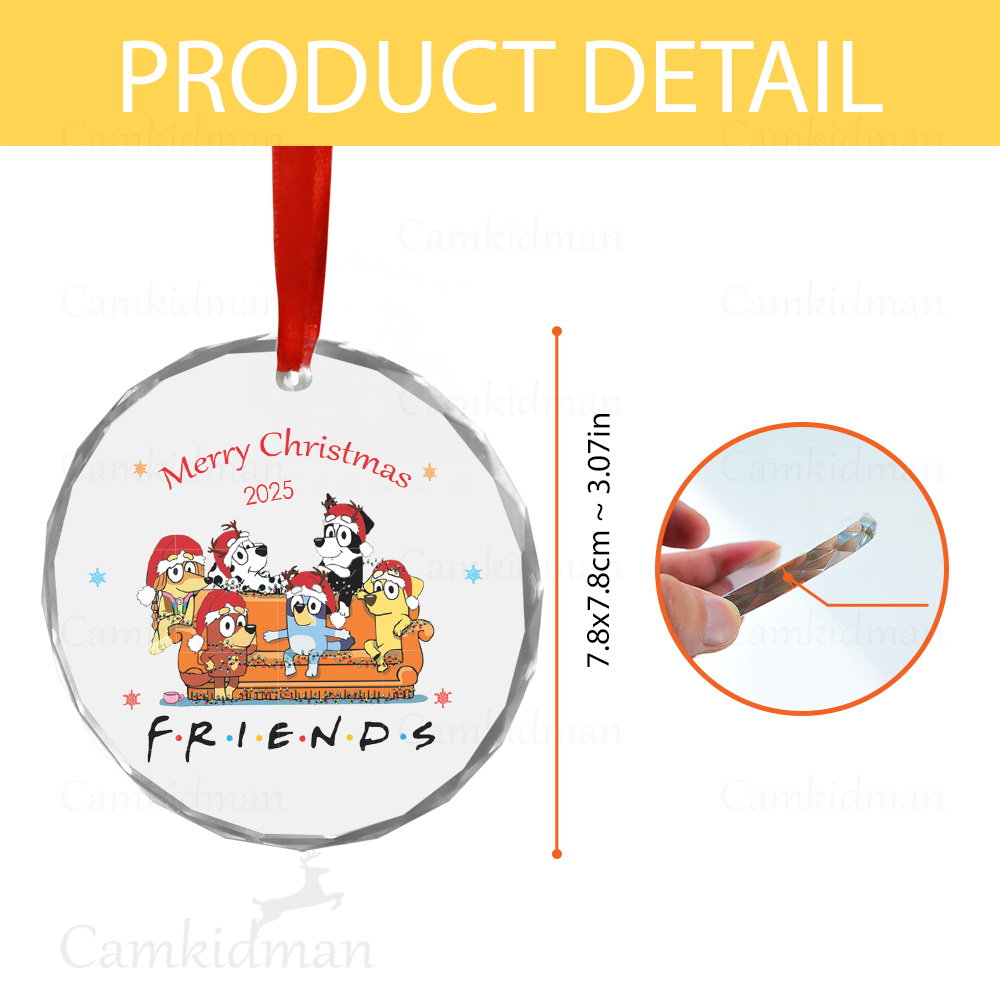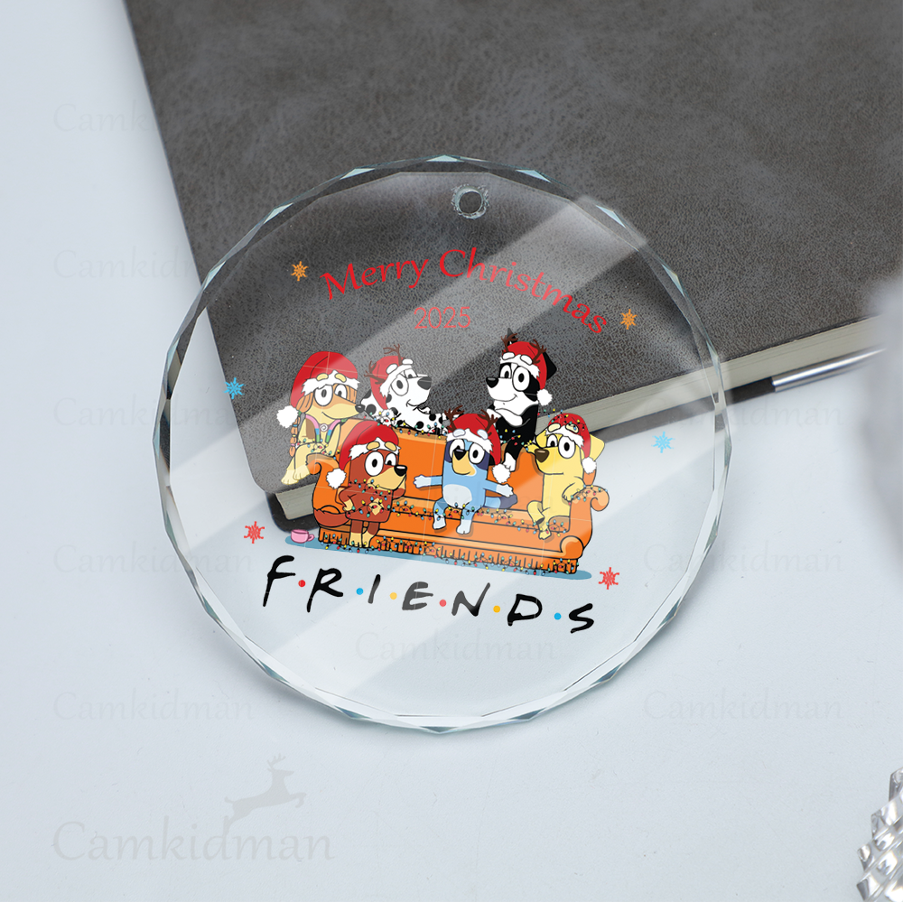 Personalized Name Bluey Friends TV Theme 2025 Christmas Glass Ornament gifts family