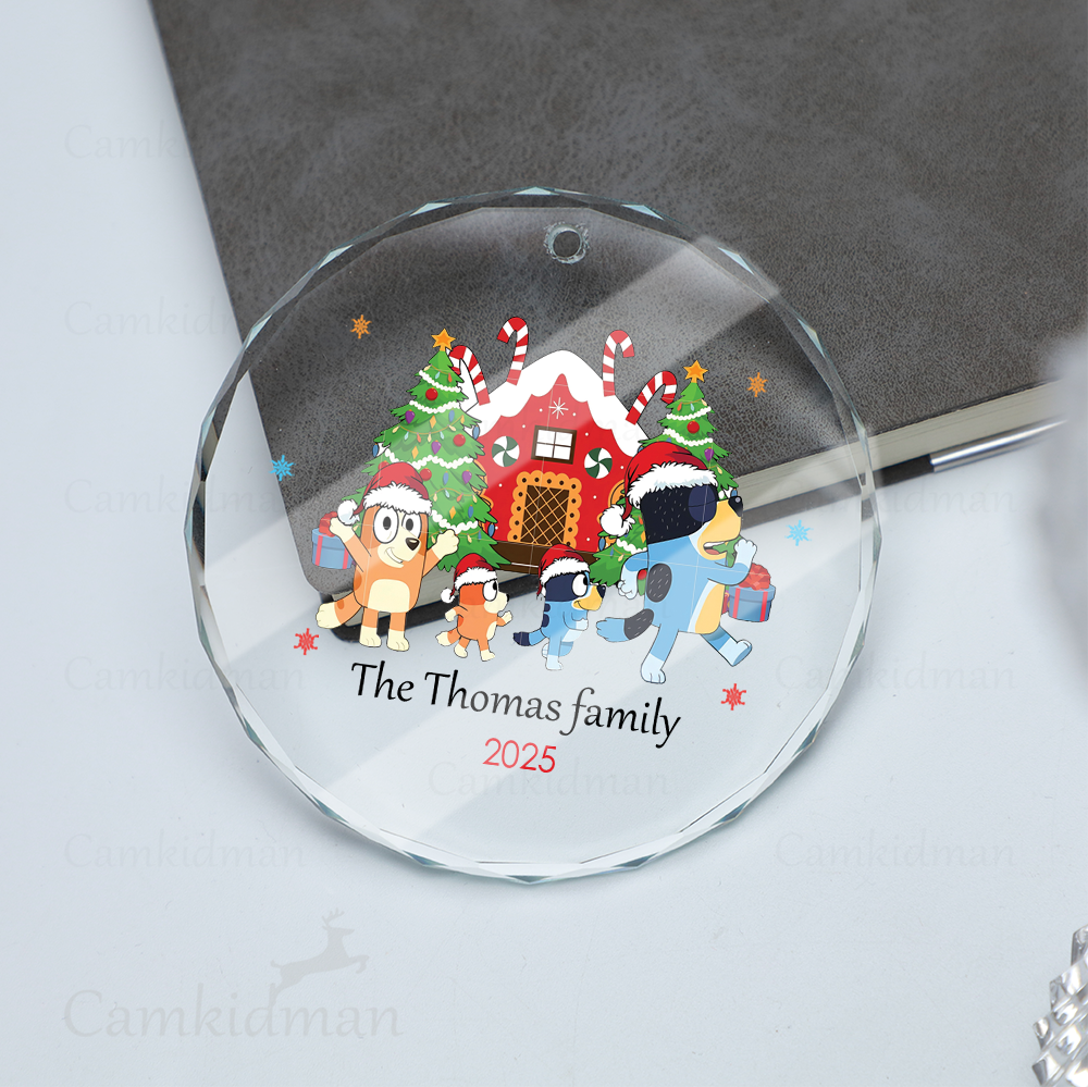 Personalized Name Bluey House Christmas 2025 Christmas Glass Ornament gifts kids
