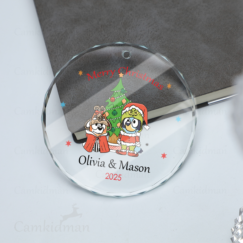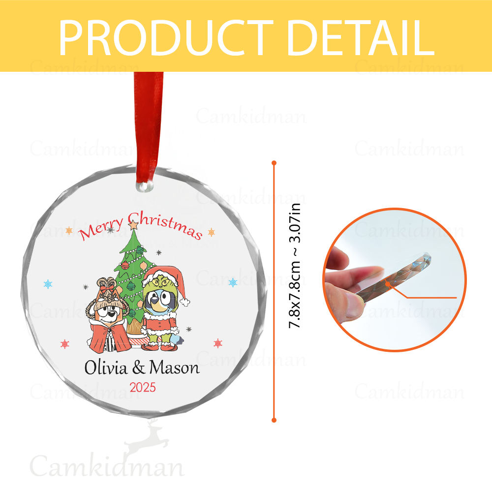 Personalized Name Bluey Puppies Christmas 2025 Christmas Glass Ornament gifts