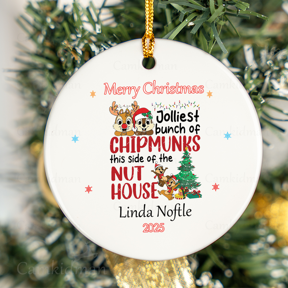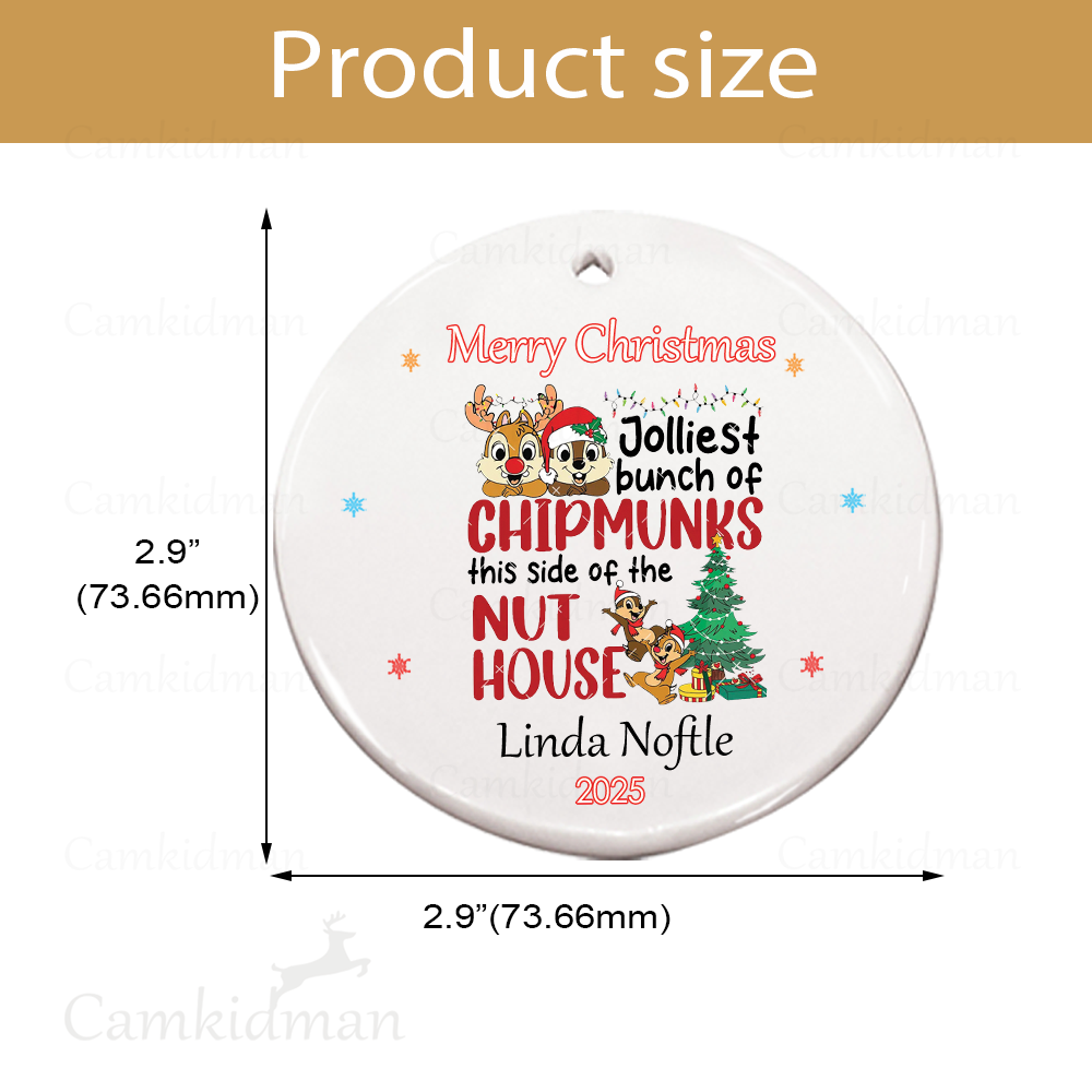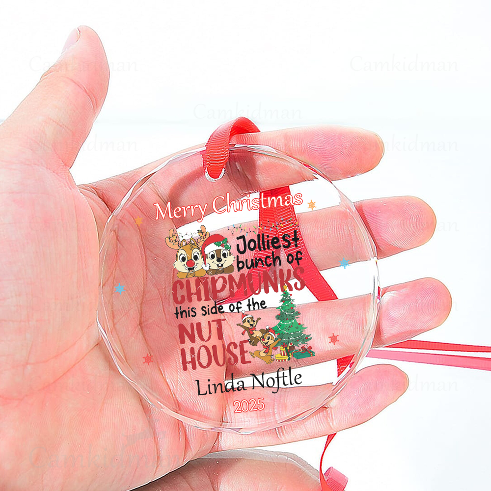 Personalized Name Chipmunks Nut House 2025 Christmas Ceramic Ornament Glass Ornament gifts